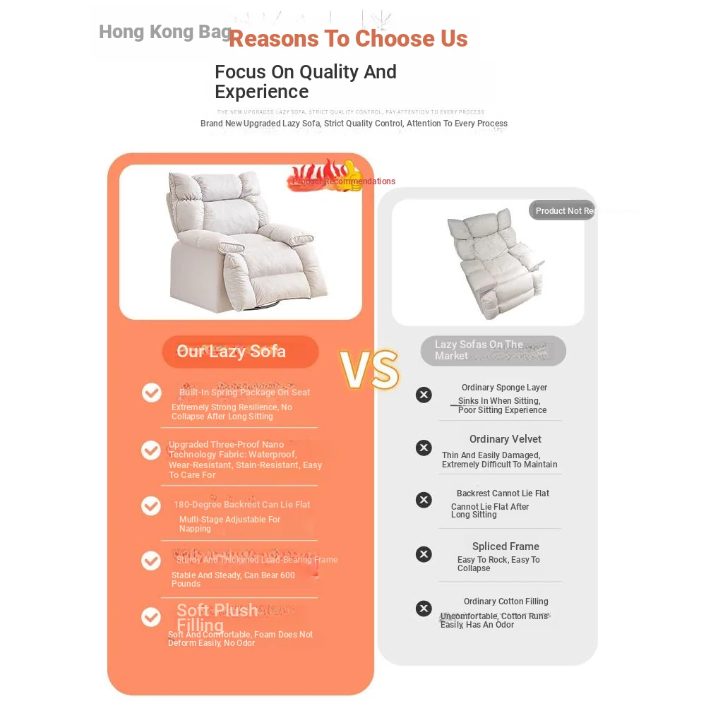 【Free Shipping in Hong Kong】Versatile Lazy Sofa - Reclining and Sleeping Function, Perfect for Home Use, Rotating Lounge Chair, Ideal for Living Room, Single Seat Armchair