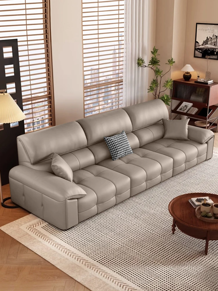 Smart Retro Leather Sofa Bed with Electric Recline - Wall-Mounted Multi-Functional Space-Saving Solution for Living Room, Perfect for Couples and Guests