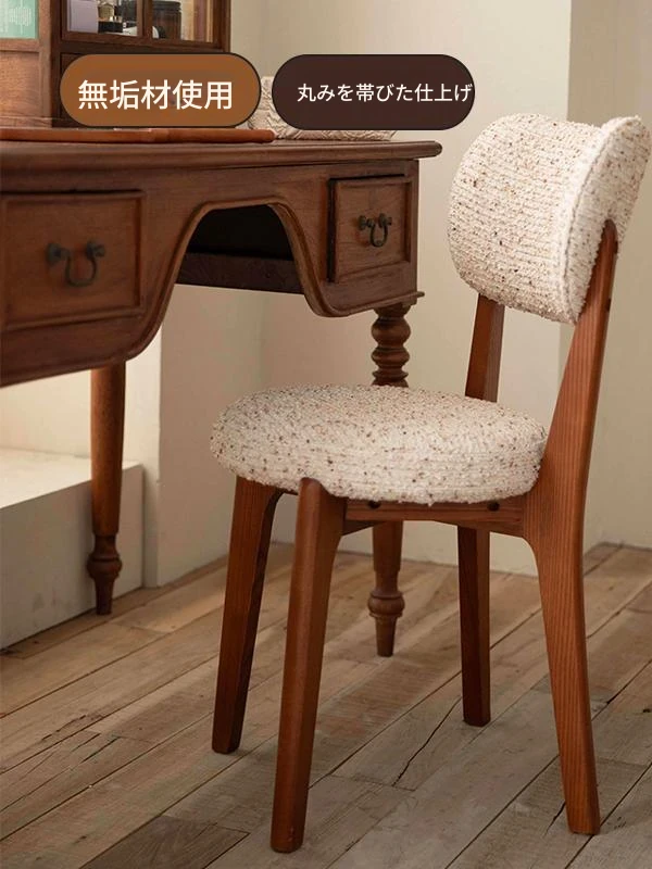 リリー椅子 フランス風レトロクリームデザイン 高級感溢れる無垢材ソフトパッケージチェア アンティーク風デスクチェア メイクアップチェアに最適!おしゃれで機能的なインテリアを演出します。