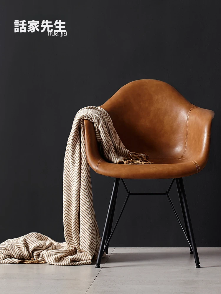 北欧スタイルの本革ダイニングチェア|デザイナーズホテル向けのレトロなインダストリアル風アームレスト付きリクライニングチェア|書斎にも最適!高級感あふれる快適な座り心地をお楽しみください。
