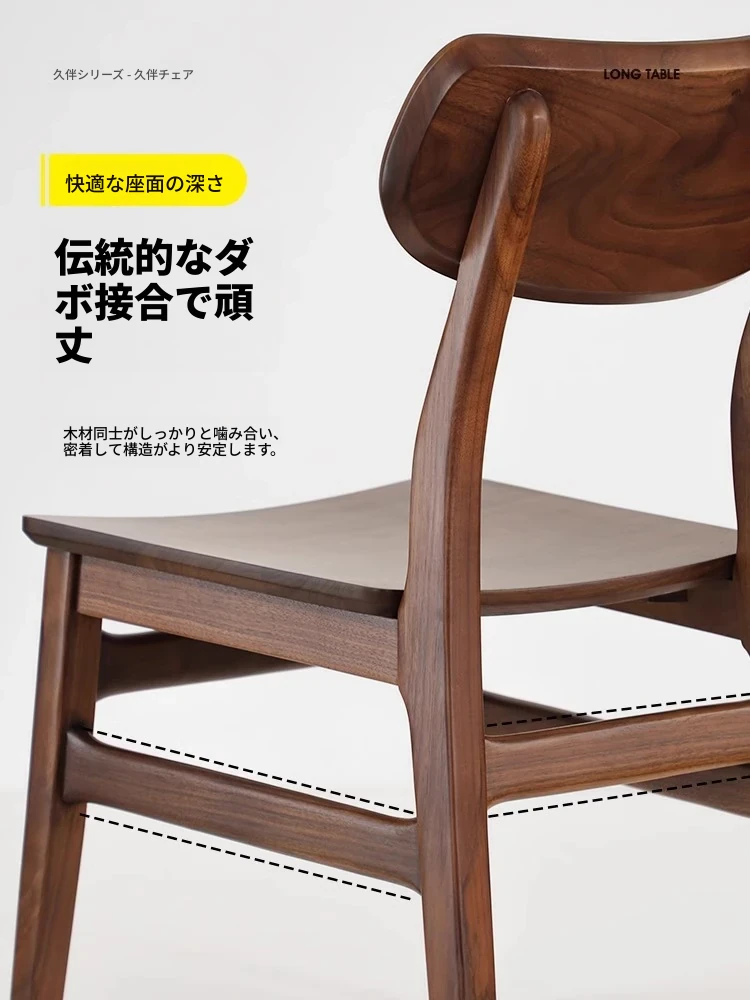 北米産ブラックウォールナット無垢材ダイニングチェア - モダンなデザインで、家での作業や食事に最適!背もたれ付きのリラックスチェア、コンパクトなサイズで小さなスペースにもぴったり。