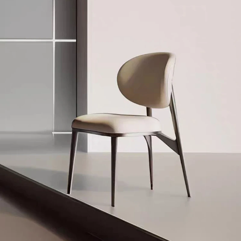 北欧スタイルのステンレス製アーチ型ダイニングチェア - 小スペースに最適なモダンミニマリストデザイン、快適な背もたれ付き、リッチな雰囲気でおしゃれな食卓を演出!
