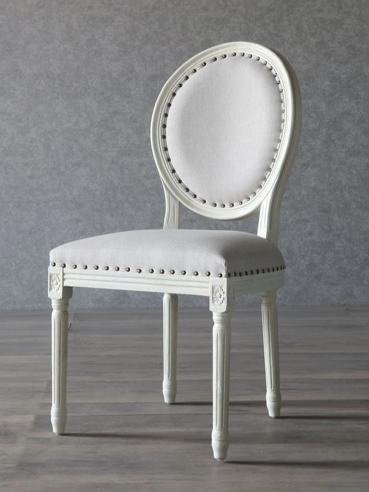アメリカンプリンセス風スタディチェア|ネイルサロン・メイクアップ用椅子|欧風地中海スタイルのレトロアイボリーホワイト天然木製ダイニングチェア|優雅さと快適さを兼ね備えた一品!