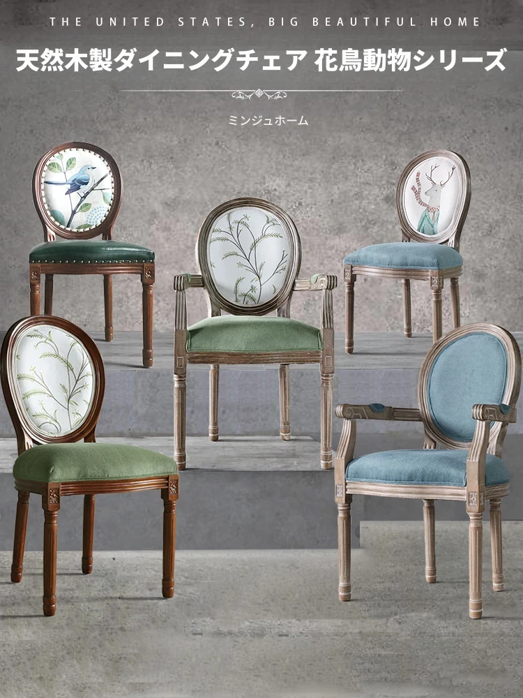 無垢材使用のレトロフレンチデザインダイニングチェア|家庭用・カフェ・ホテルに最適な背もたれ付き|デザイナー厳選のアンティークスタイルリクライニングチェア!快適な座り心地で、食事の時間を特別に演出します。