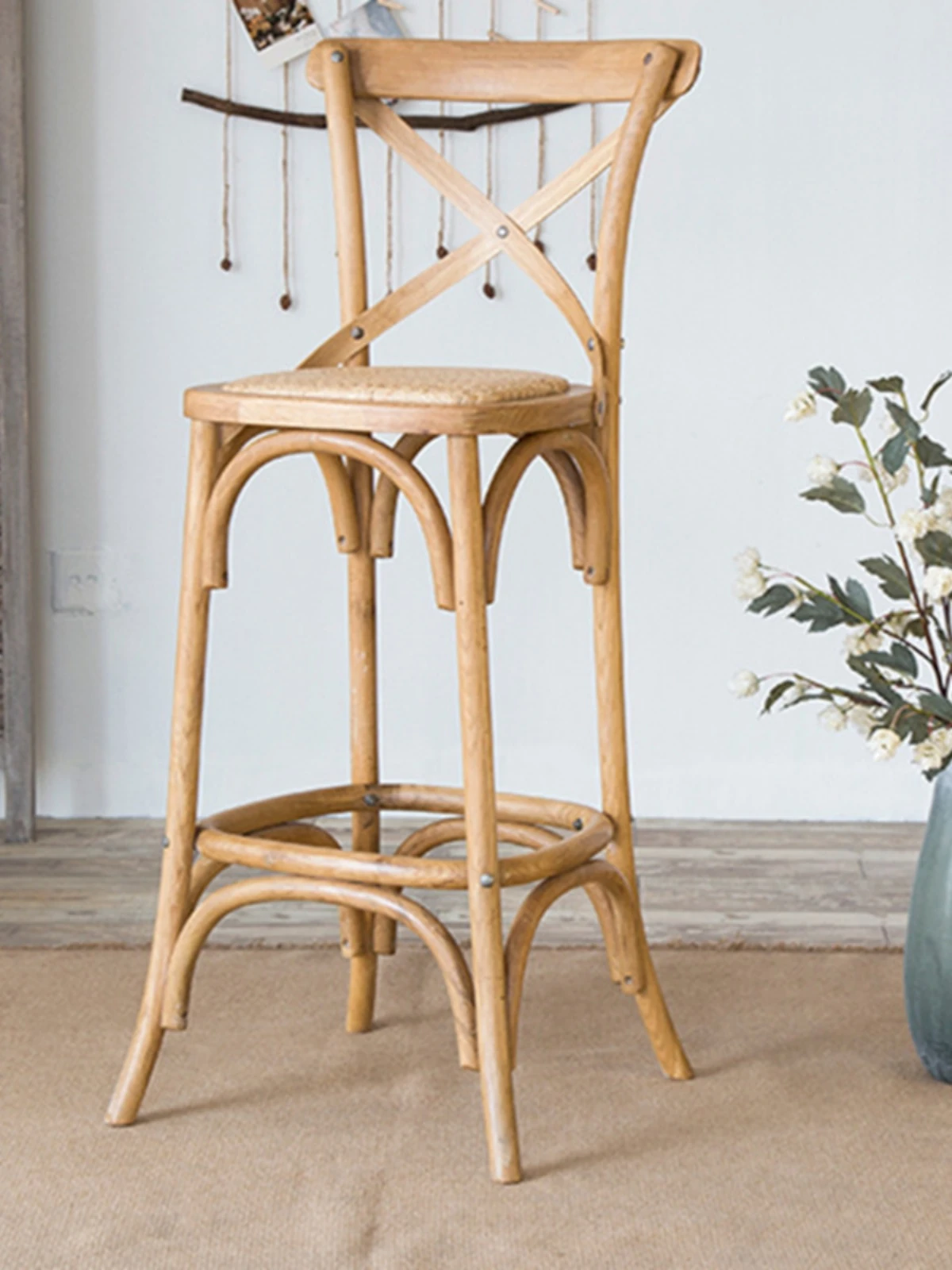 高脚椅子 木製バースツール 軽やかなラグジュアリー感 家庭用 ヴィンテージスタイル 高背もたれ付き モダンミニマリストデザイン おしゃれなバー空間を演出する一品!