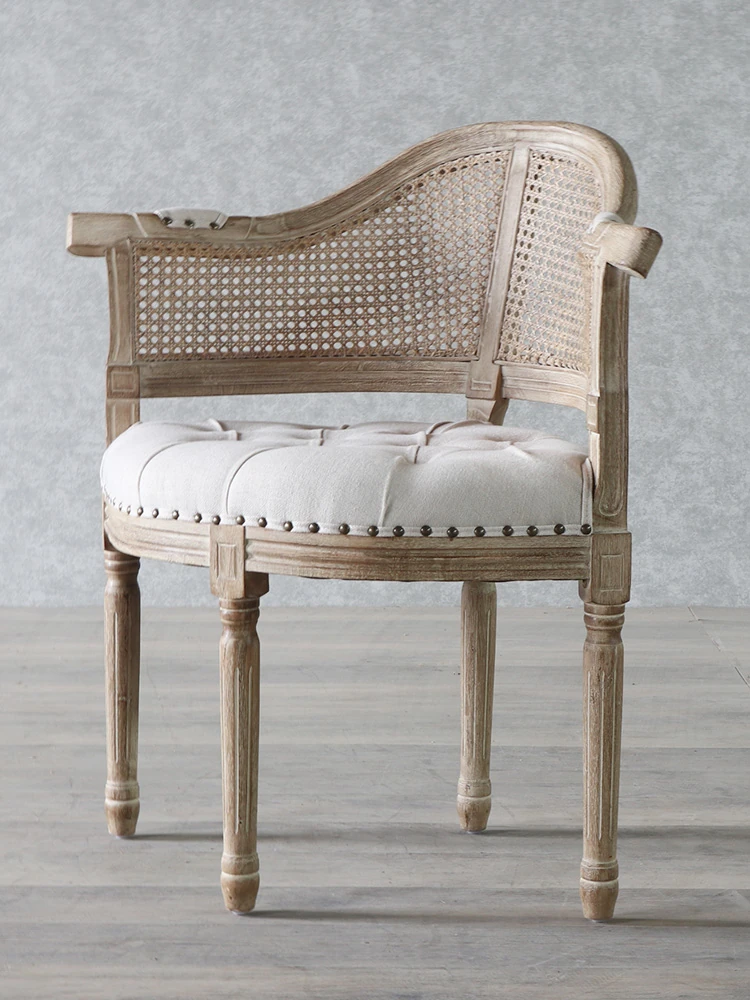 フレンチカントリー風のヴィンテージアームチェア|アメリカンラグジュアリーのレトロダイニングチェア|カフェや民宿にぴったりなデザイナーのティー&リラックスチェア。優雅なひとときを演出します!