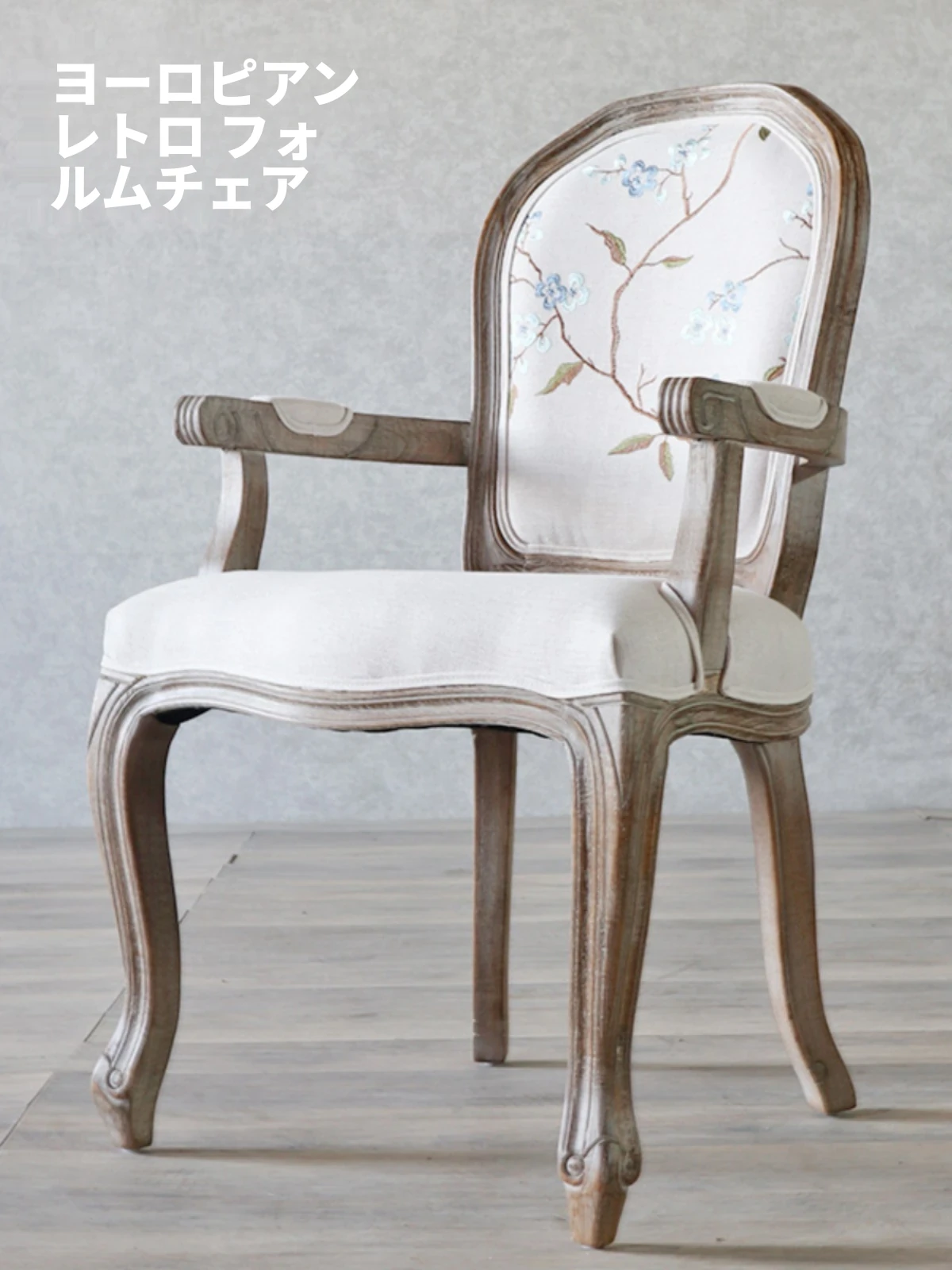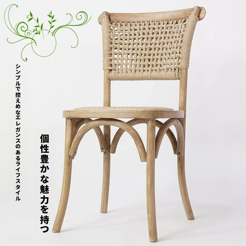 レトロスタイルの無垢材ダイニングチェア|背もたれ付き|家庭用フレンチアンティーク風|ヴィンテージ感漂うカントリースタイル|飲食店にも最適な商業用チェア