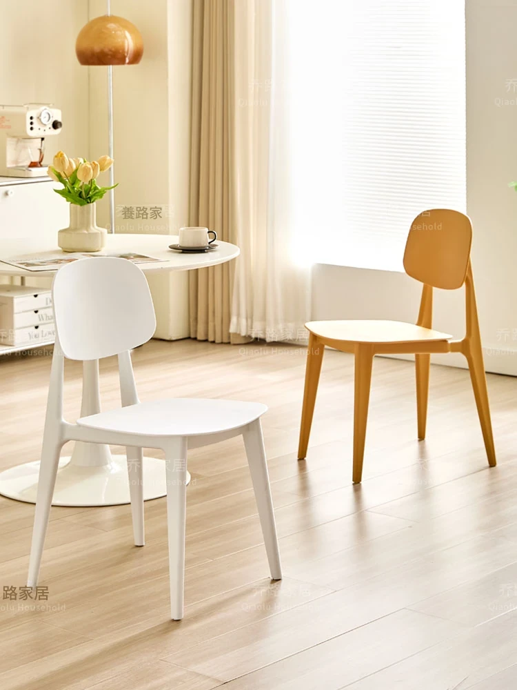 北欧スタイルのシンプルなマカロン背もたれプラスチック椅子 - 快適で厚手のデザイン、リビングやダイニングにぴったりの軽やかな高級感。勉強や食事に最適なリラックスチェア!