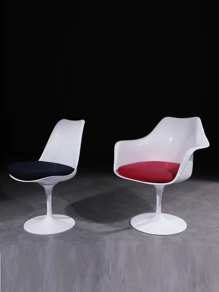 オリジナル ブラック&ホワイト チューリップ 回転式カフェチェア シンプルなフレンチデザイン グラスファイバー製 リラックスできる背もたれ付き アームチェア 商談にも最適!