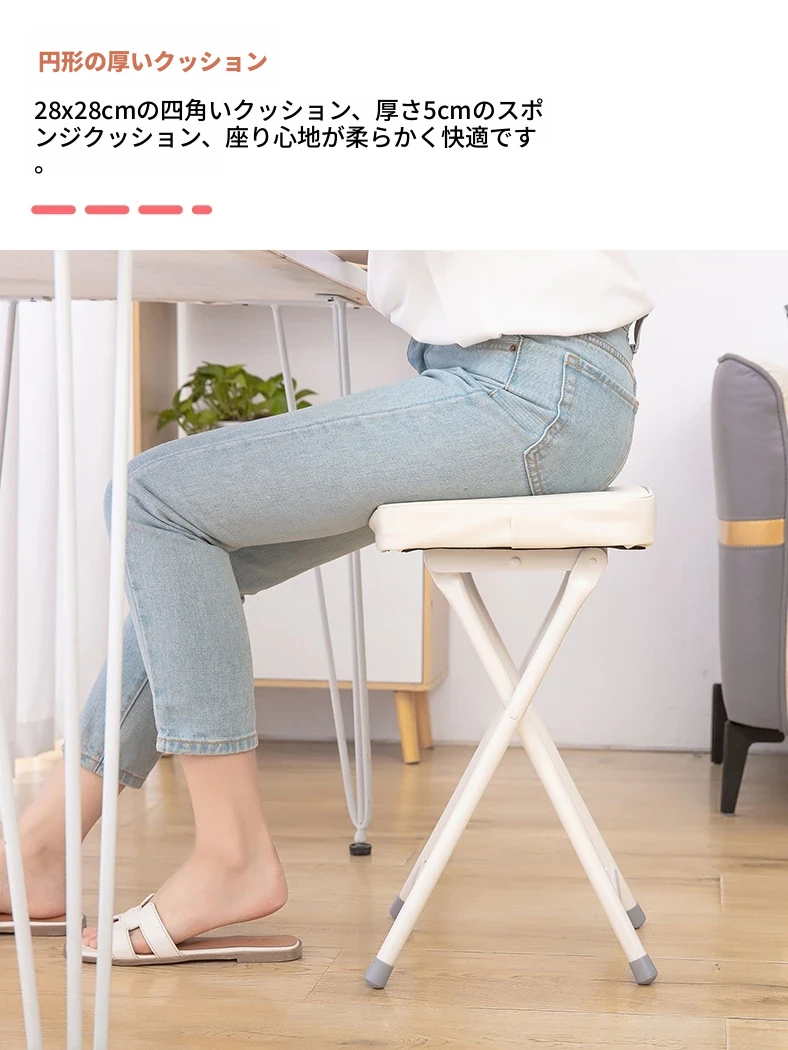 YSFシンプルデザインのホワイト折りたたみ椅子 - 寝室や読書、会議、臨時の食事に最適!スタイリッシュなスクエアスツールで、どんな空間にもフィットします。快適な座り心地をお楽しみください!