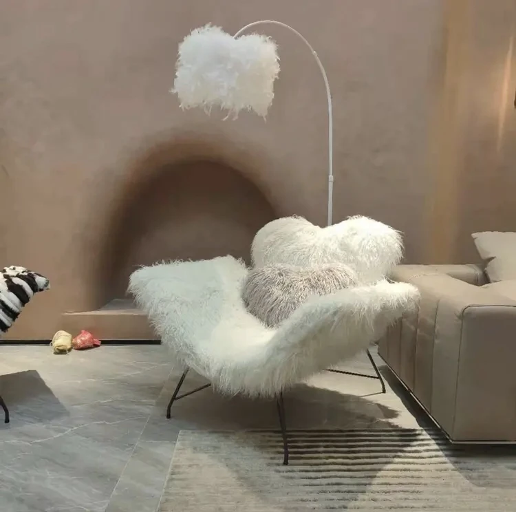 Chic White Sheepskin Single Queen Sofa Chair - Instagram-Worthy American Light Luxury Lounge Chair with Nordic Designer Touch for Your Living Room