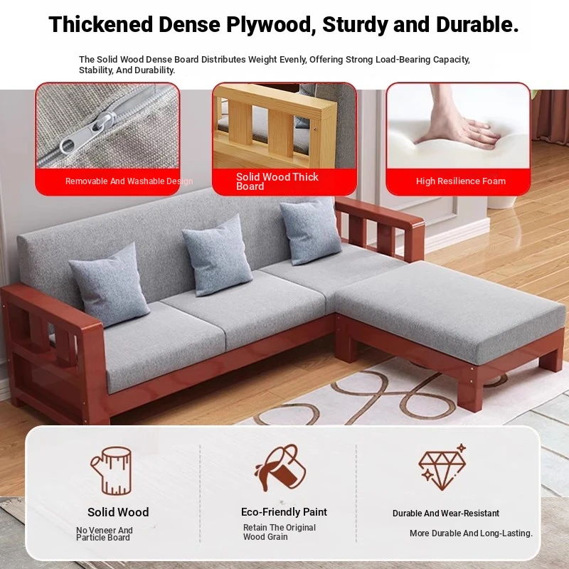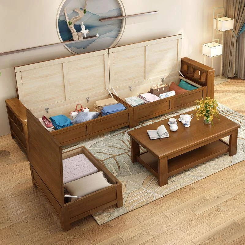 Nordic Solid Wood Chaise Longue Sofa Set - Modern Minimalist Multi-Person Sofa with Storage for Large Spaces, Stylish and Functional Design