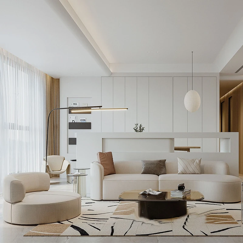 Curved Sofa Set for Real Estate Sales Office - Elegant VIP Reception Area Furniture for Signing Rooms and Show Houses