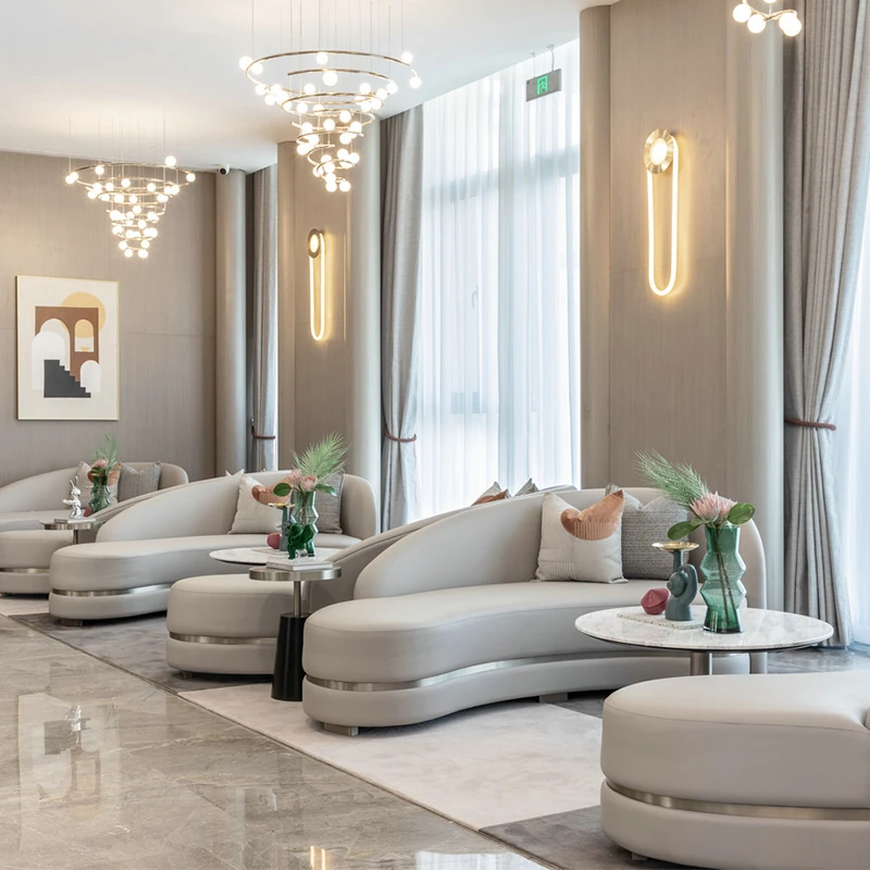 Modern Curved Luxury Reception Sofa Set for Sales Offices and Hotels - Stylish and Functional Lounge Furniture for Marketing Centers and Meeting Spaces