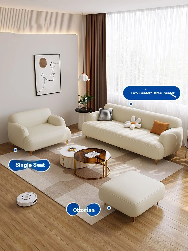 Nordic Minimalist Luxury Napa Leather Sofa - Modern Simple 3-Seater for Small Living Rooms with Italian Tech Fabric
