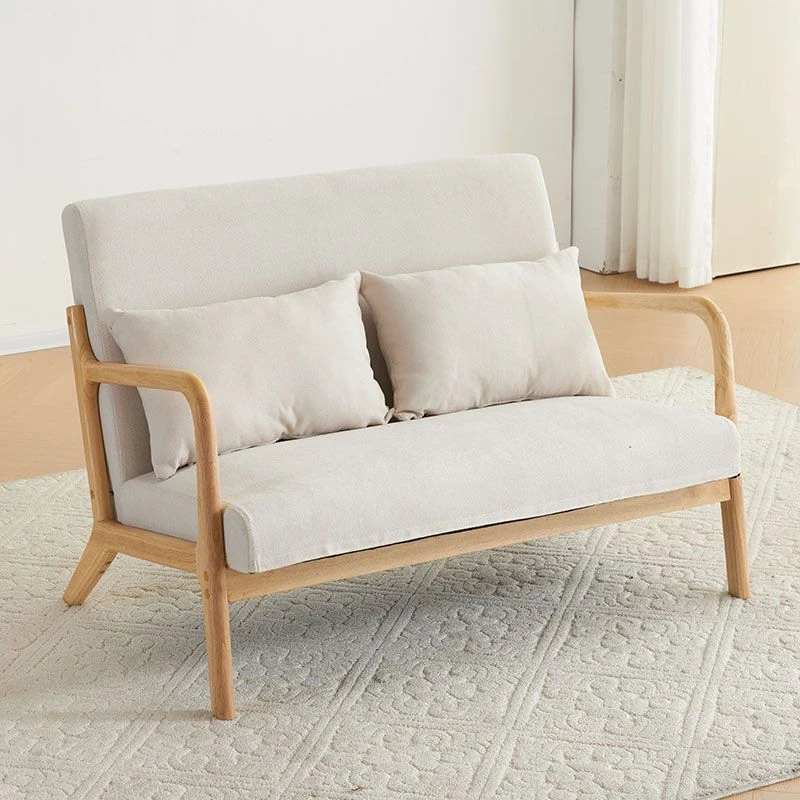 Nordic Style Solid Wood Sofa for Small Spaces – Perfect for Tea Shops and Modern Cafés, Available in Single, Double, and Three-Seater Options