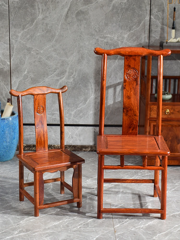 Elegant Rosewood Hedgehog Purple Sandalwood Official Hat Chair - New Chinese Style Natural Solid Wood Dining Chair for Hotels and Homes, Perfect for Kids with Comfortable Backrest