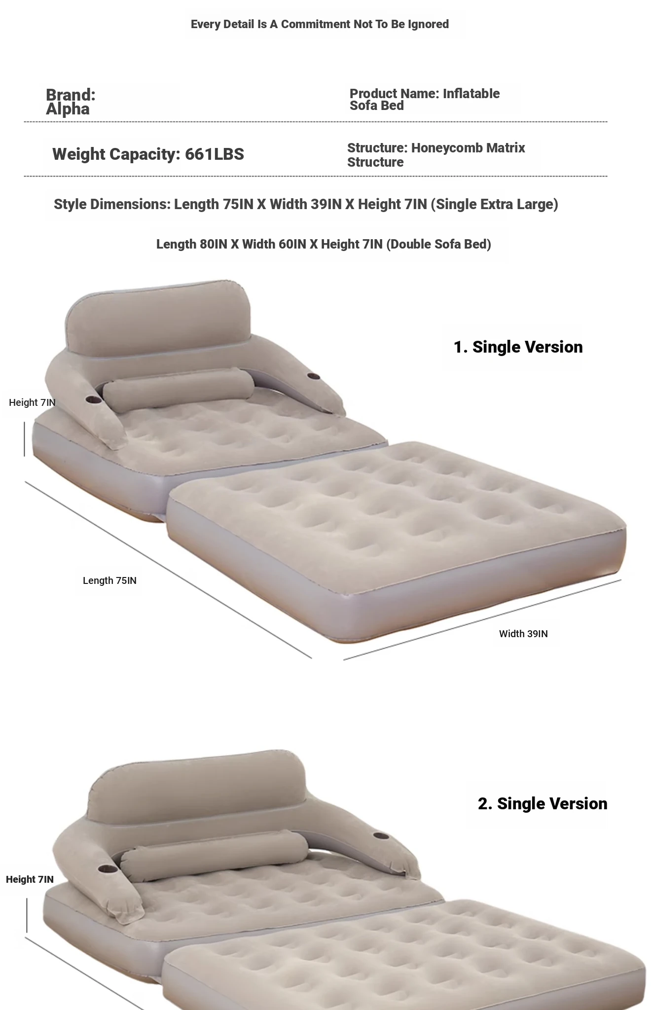 Alpha Inflatable Sofa Bed - Foldable Multi-Functional Lazy Sofa and Air Mattress for Two, Perfect for Home and Outdoor Use