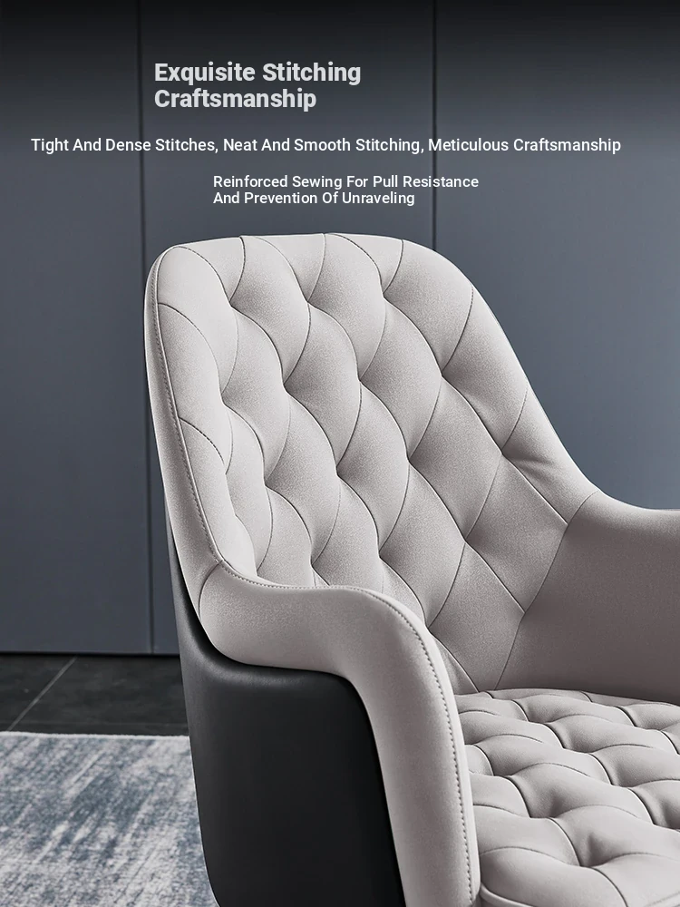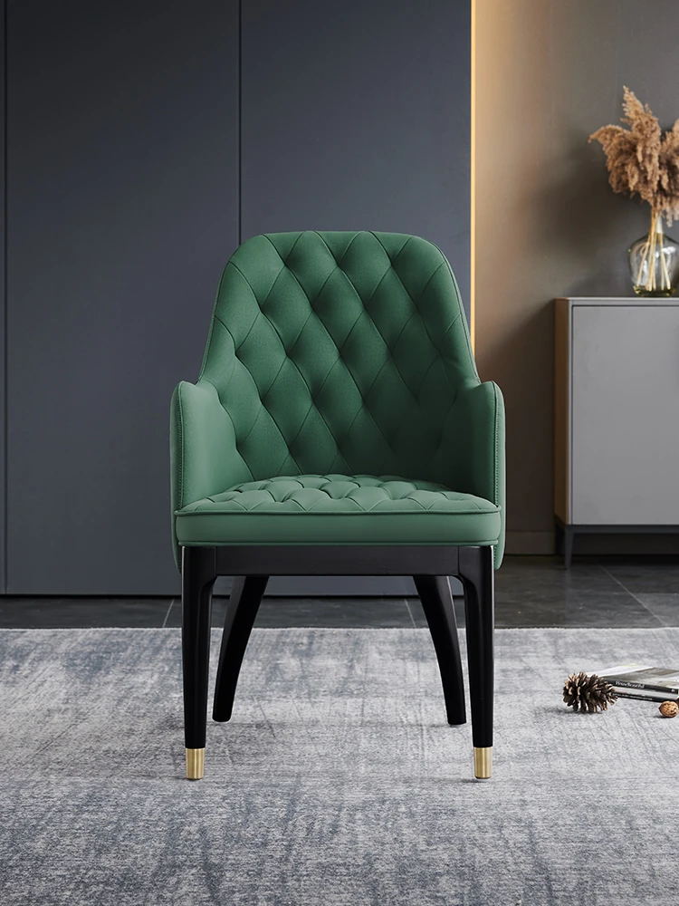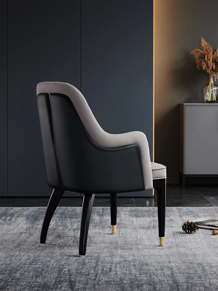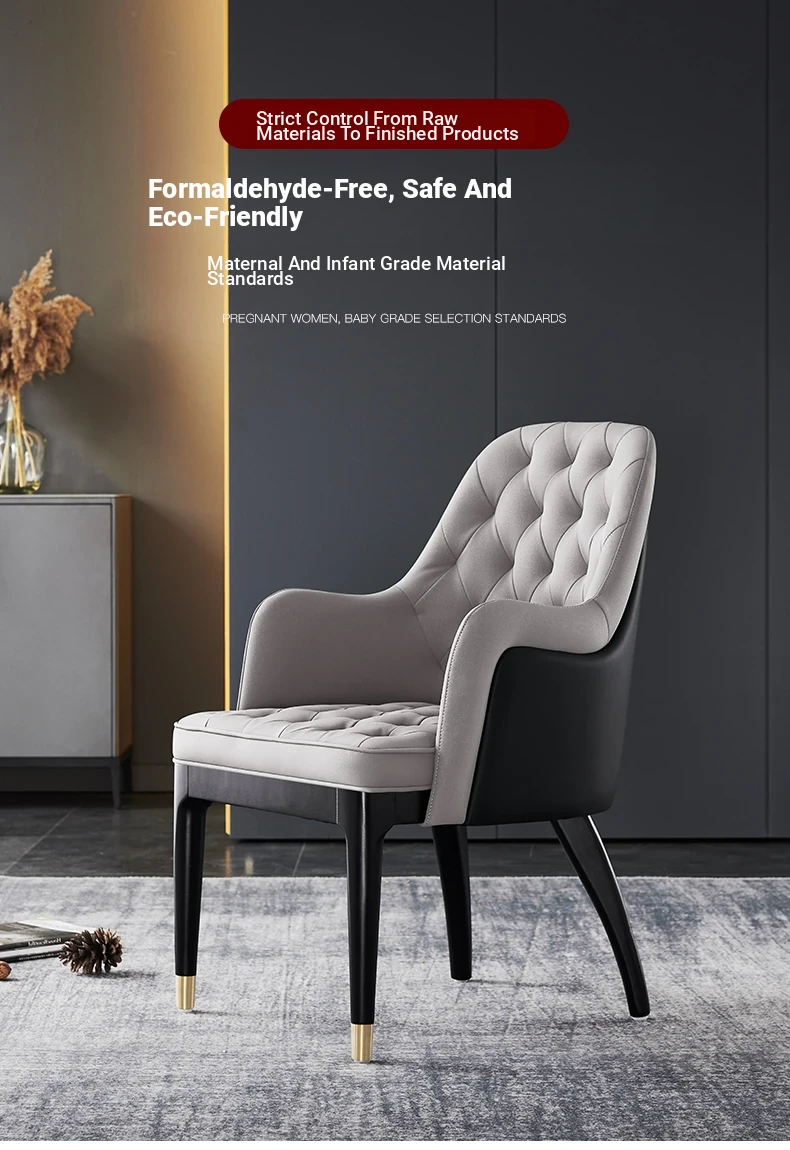 Bentley Luxury Leather Dining Chair with Armrests - Comfortable and Sturdy Design for Long Sitting, Ideal for Home Use, Solid Wood Frame, Perfect for Dining Rooms and Mahjong Games.