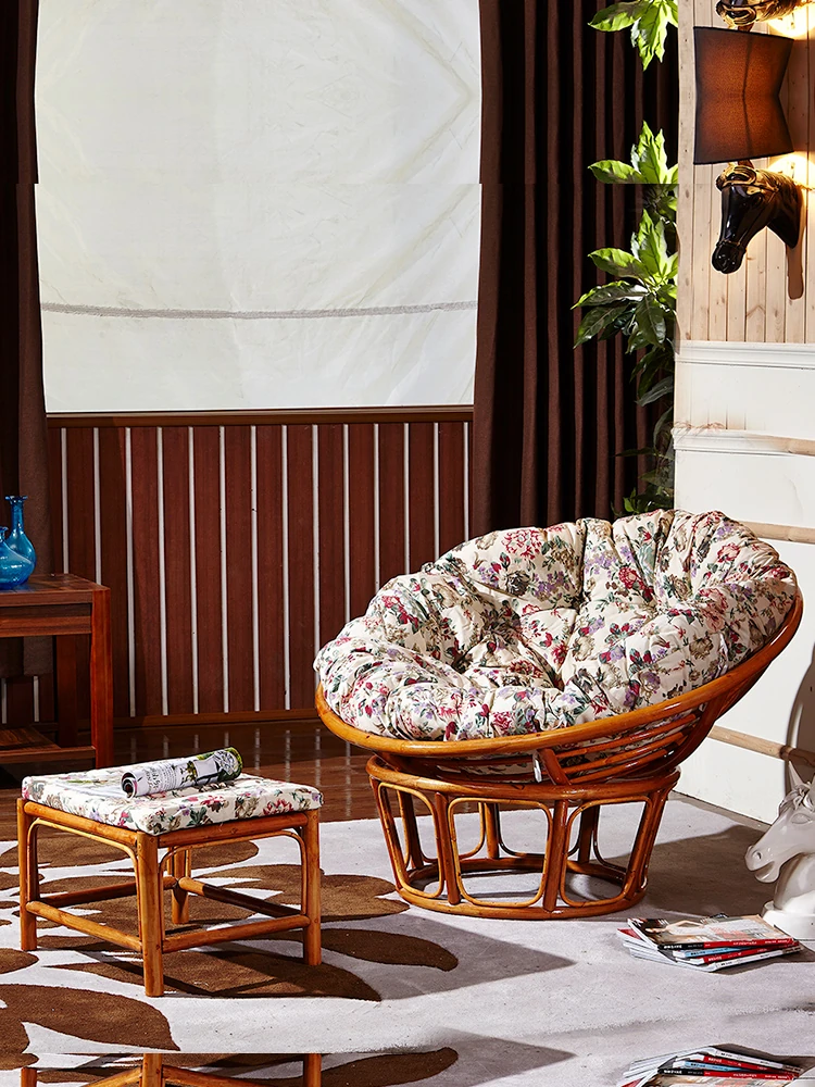 Cozy Bamboo Rattan Lounge Chair - Perfect for Reading, Relaxing, and Adding Style to Your Bedroom, Balcony, or Living Room. Round Design for Ultimate Comfort - Ideal for Solo Enjoyment!
