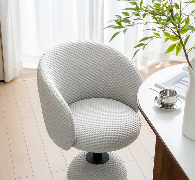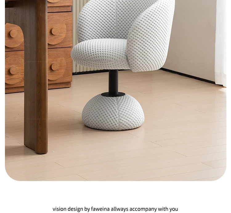 Elegant Cream Vanity Stool with Backrest - Designer French Style Rotating Chair for Girls' Bedrooms and Makeup Areas