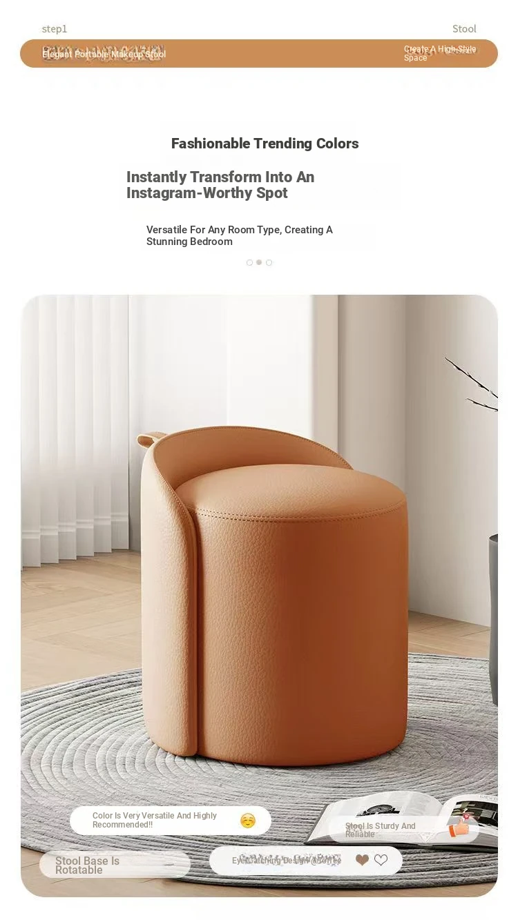 Elegant Makeup Stool for Women - Luxurious Round Vanity Chair for Bedroom, Dressing Room, and Shoe Changing. Perfect for Adding Style and Comfort to Your Space!
