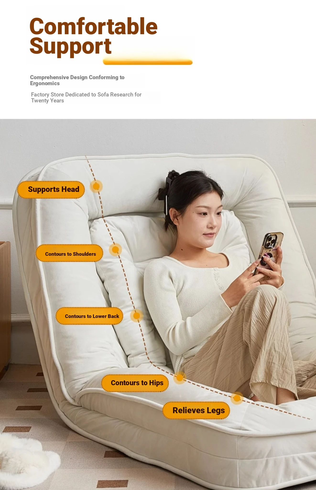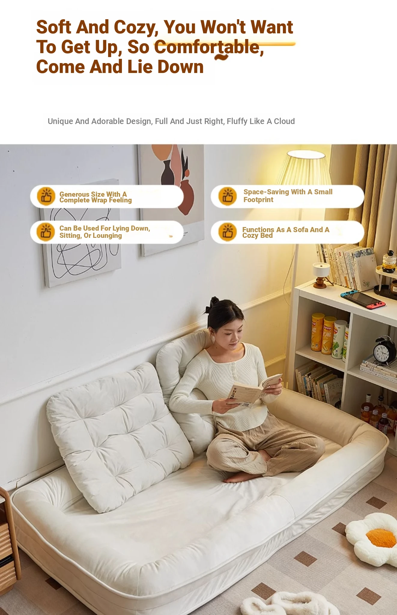 Large (unfolded 178*95) skin-feeling Velvet creamy-white [giving backrest + cushion]]