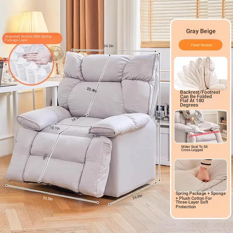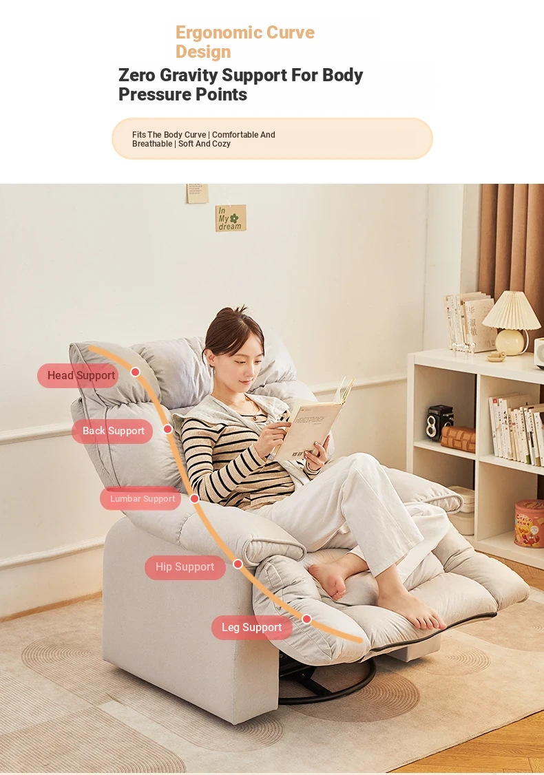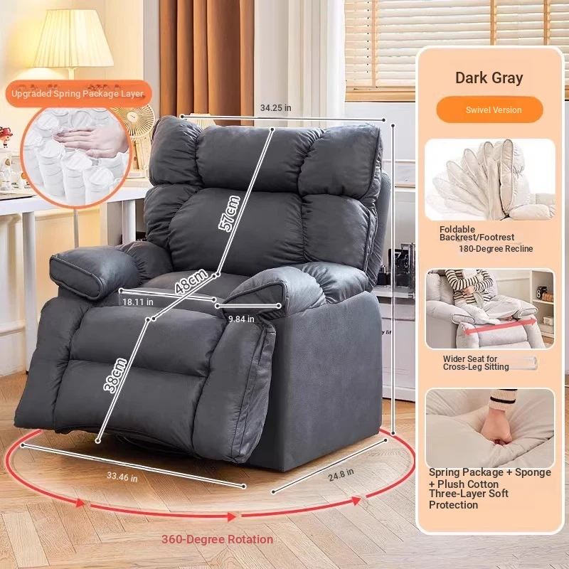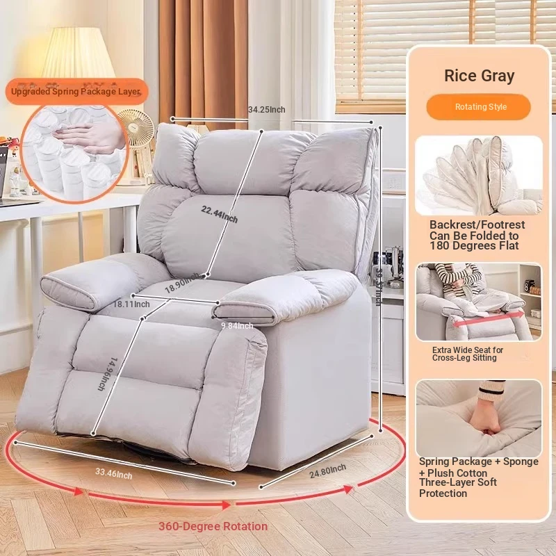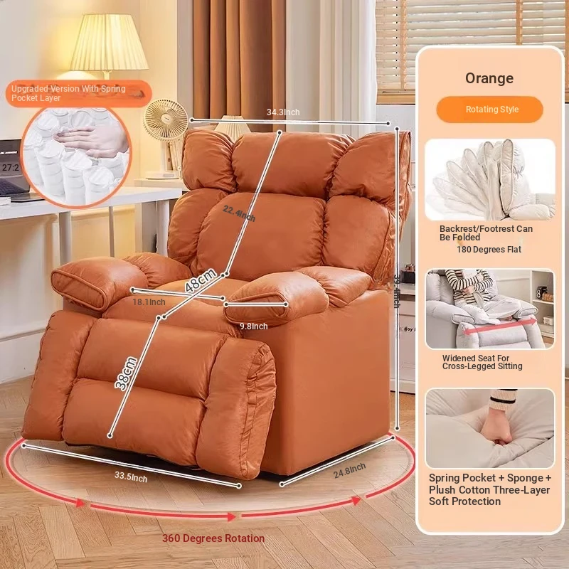 【Free Shipping in Hong Kong】Versatile Lazy Sofa - Reclining and Sleeping Function, Perfect for Home Use, Rotating Lounge Chair, Ideal for Living Room, Single Seat Armchair