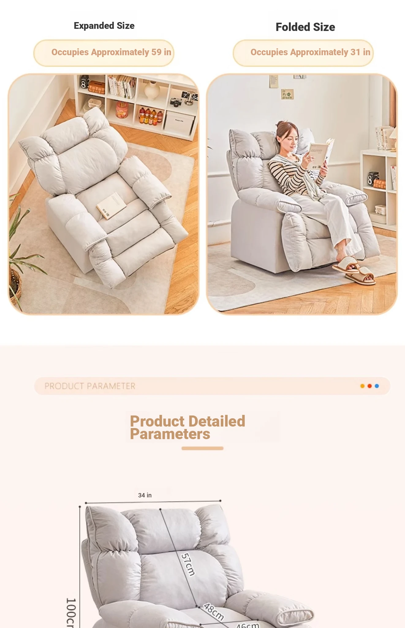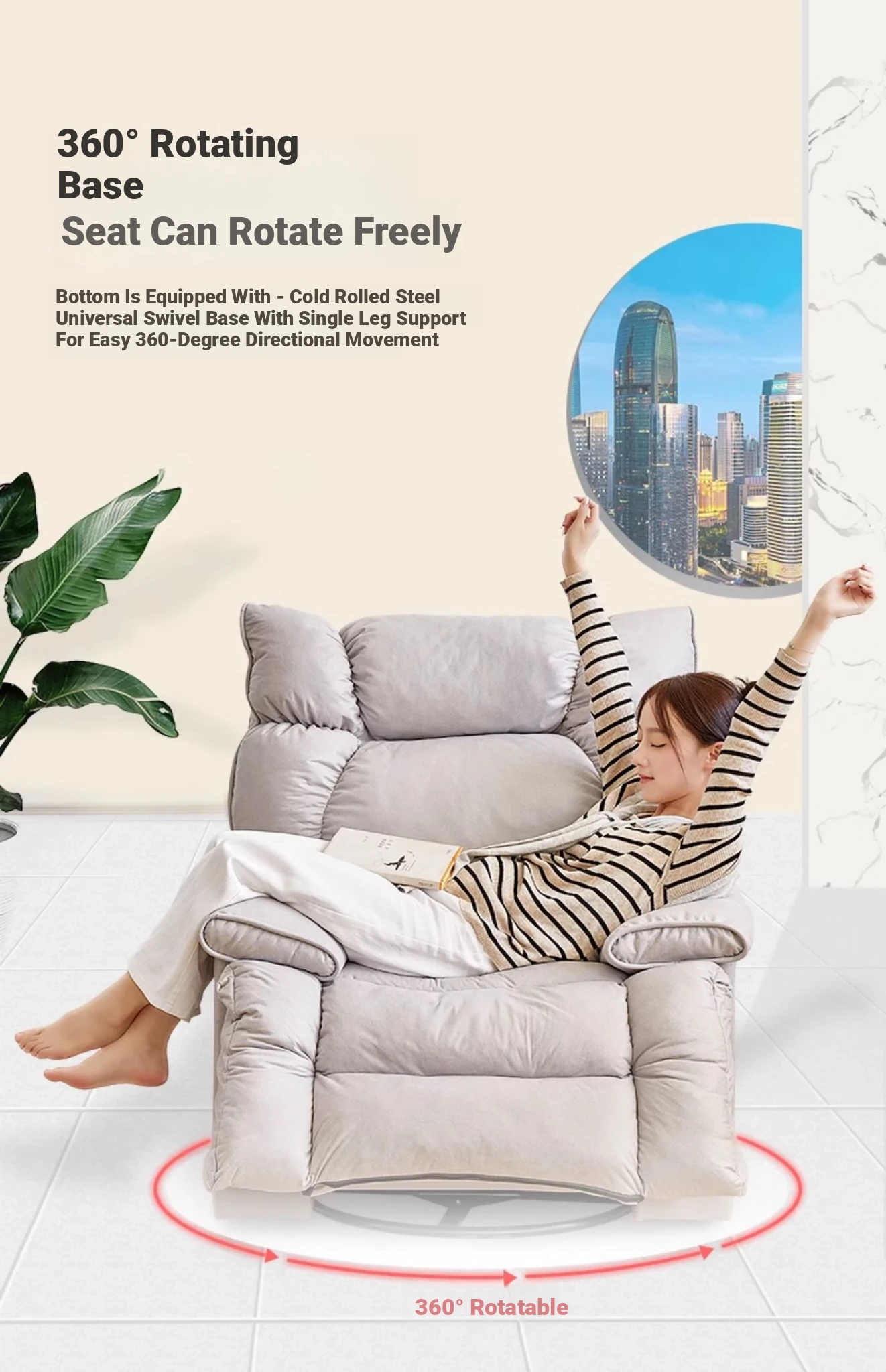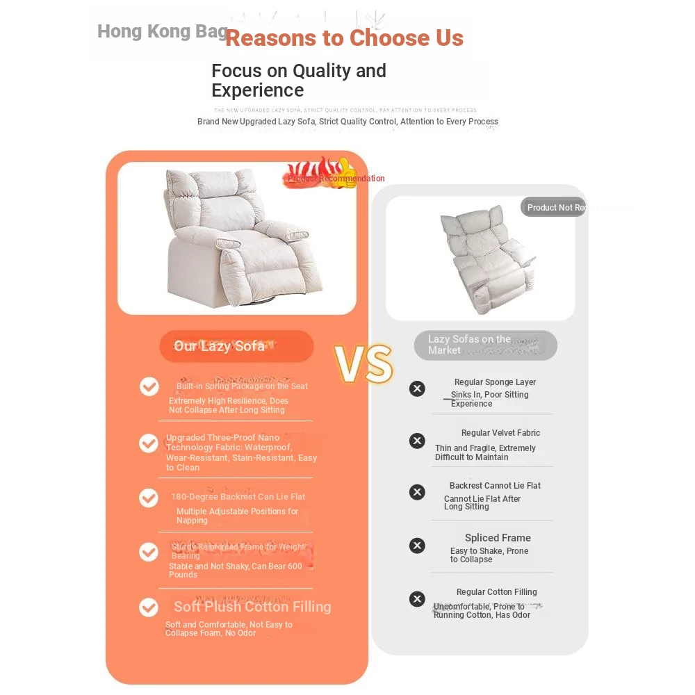 【Free Shipping in Hong Kong】Versatile Lazy Sofa - Reclining and Sleeping Function, Perfect for Home Use, Rotating Lounge Chair, Ideal for Living Room, Single Seat Armchair