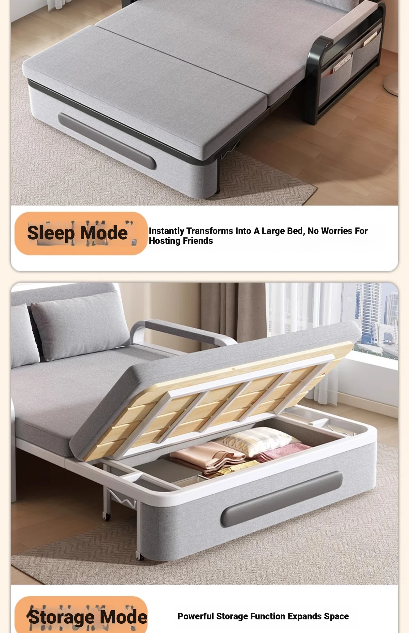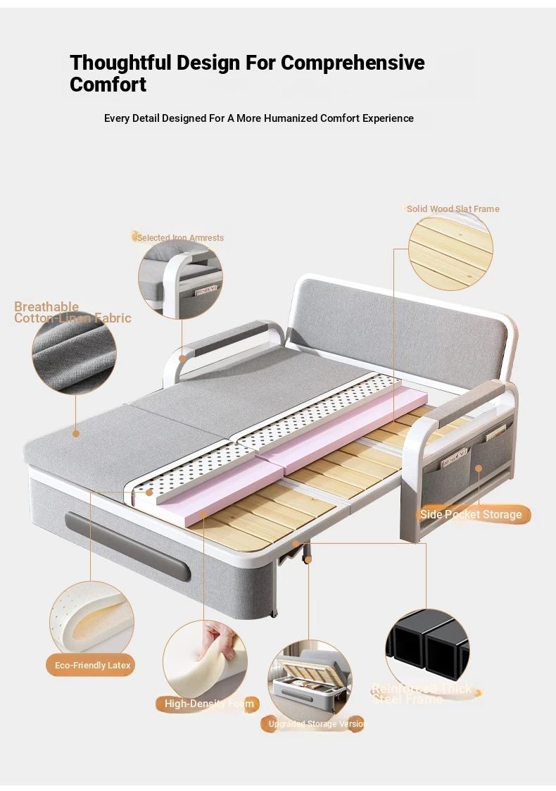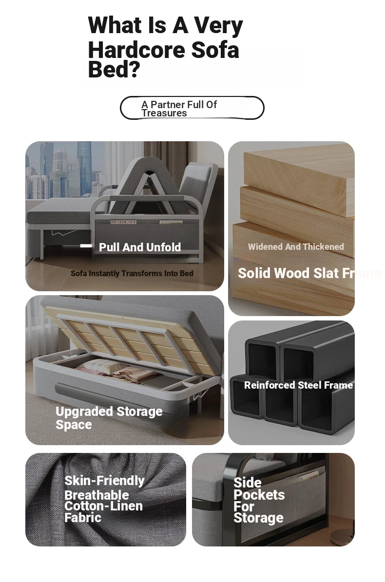 [Free Shipping to Hong Kong] 2024 New Folding Sofa Bed - Multi-Functional Expandable Bed for Small Spaces and Balconies, Made of Solid Wood