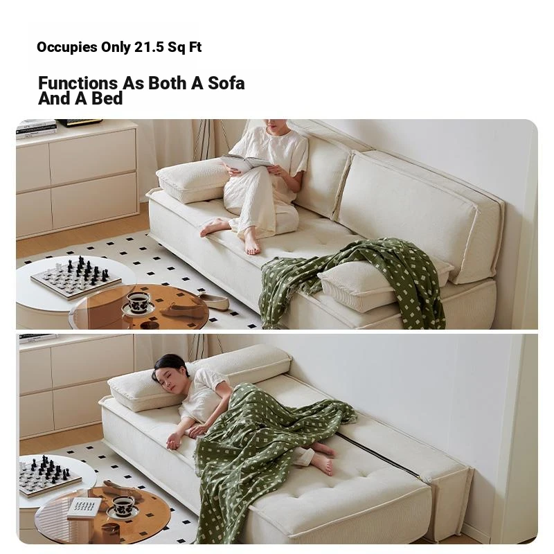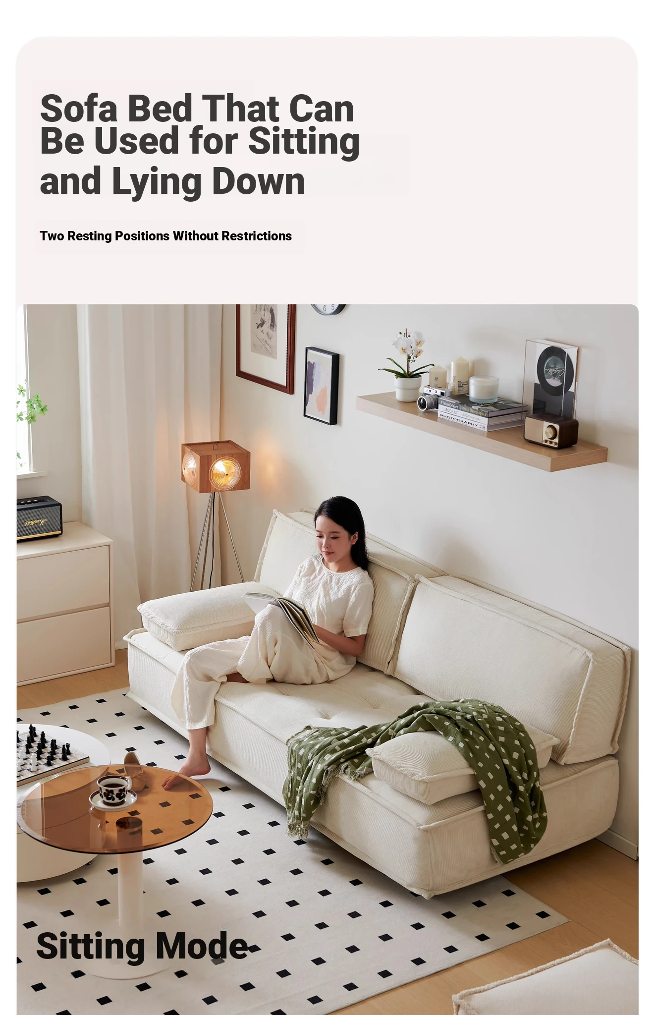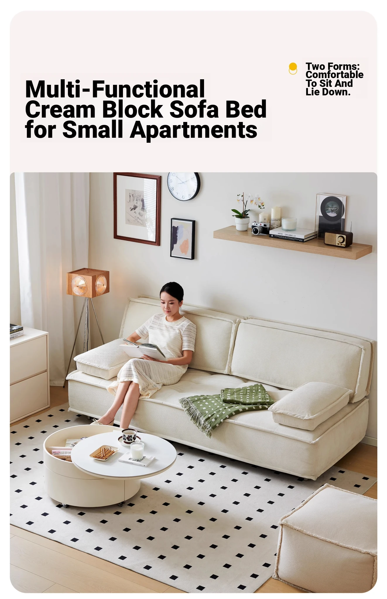 【Free Shipping to Hong Kong】Compact Sofa Bed with Foldable and Portable Features - Creamy Style, Space-Saving Design Perfect for Small Apartments!