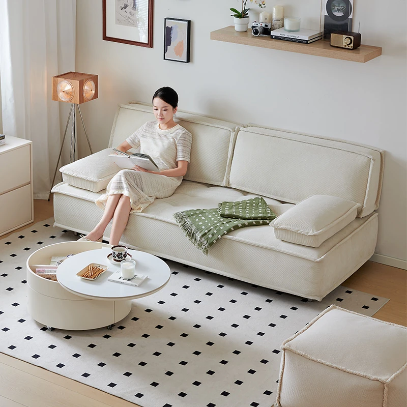[86.61 in sofa bed] light beige Comfortable corduroy