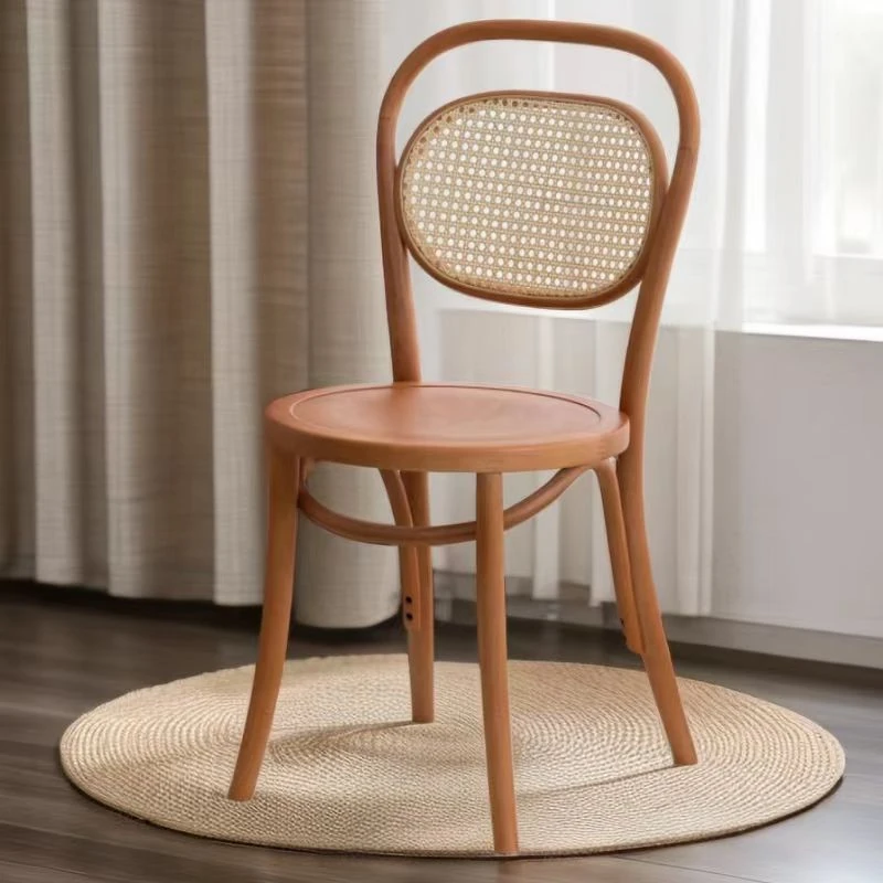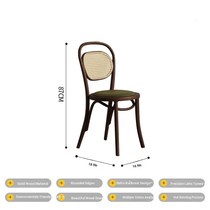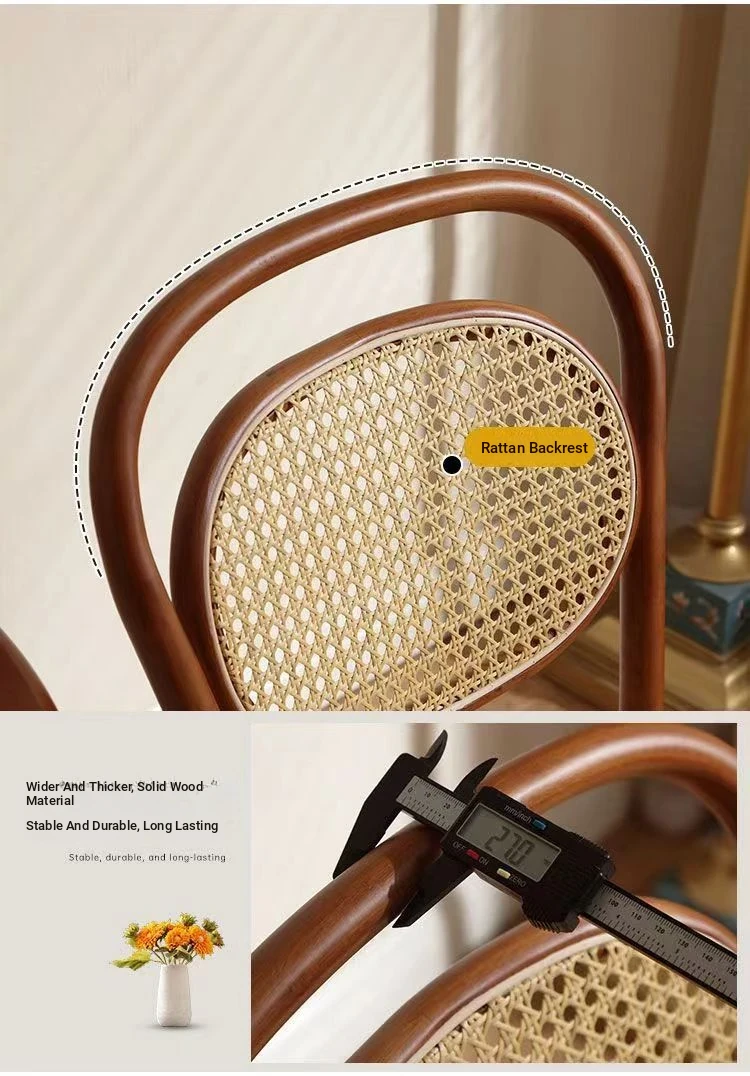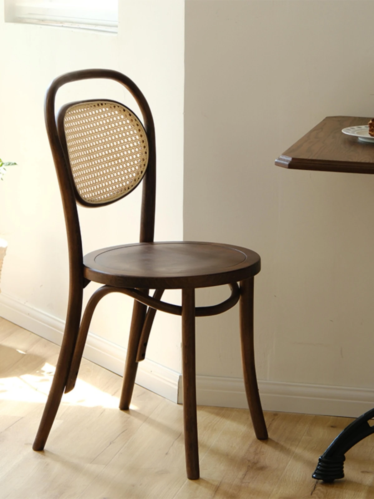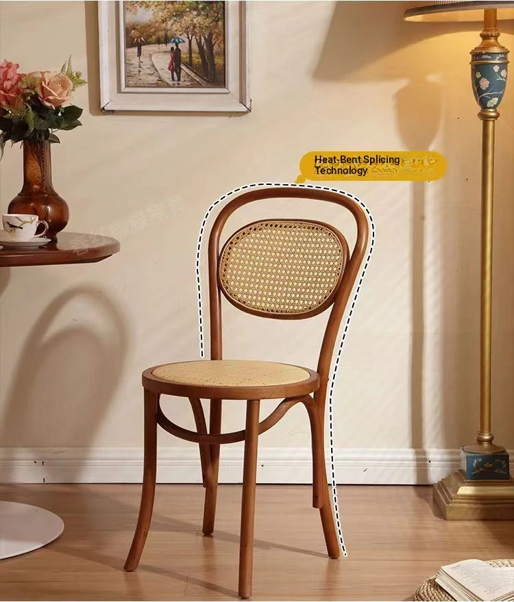 French Vintage Solid Wood Dining Chair - American Rattan Chair for Home Use, Mid-Century Backrest Chair, Elegant Leisure Dining Chair
