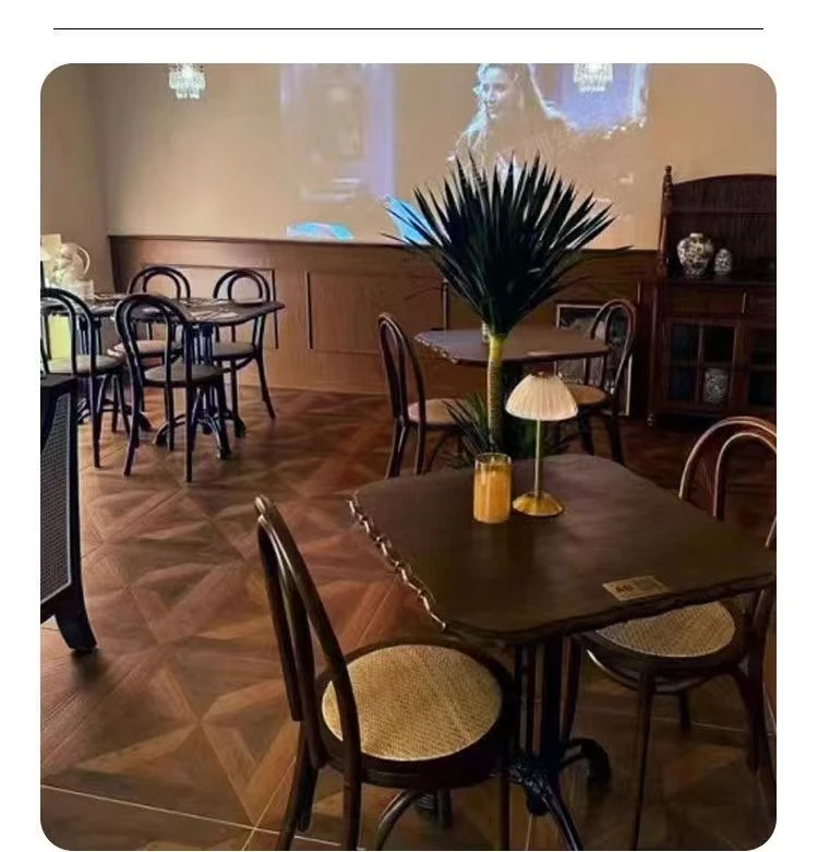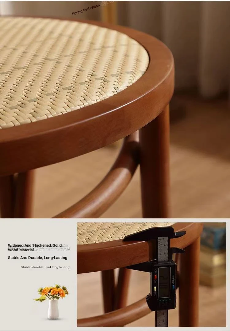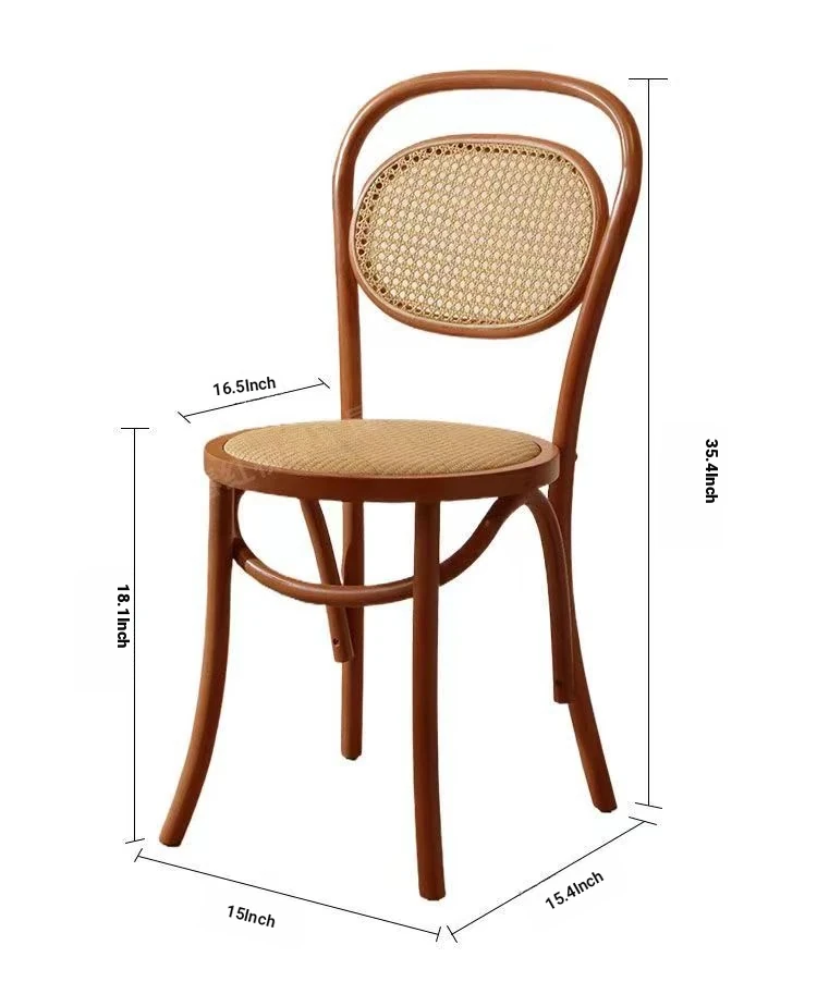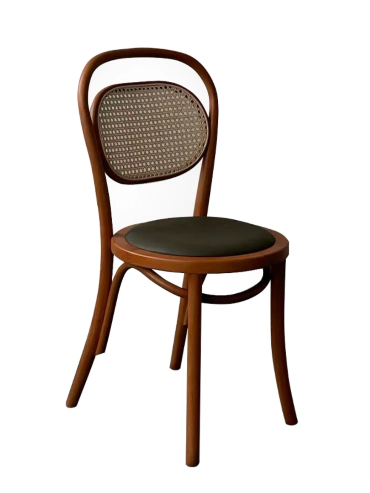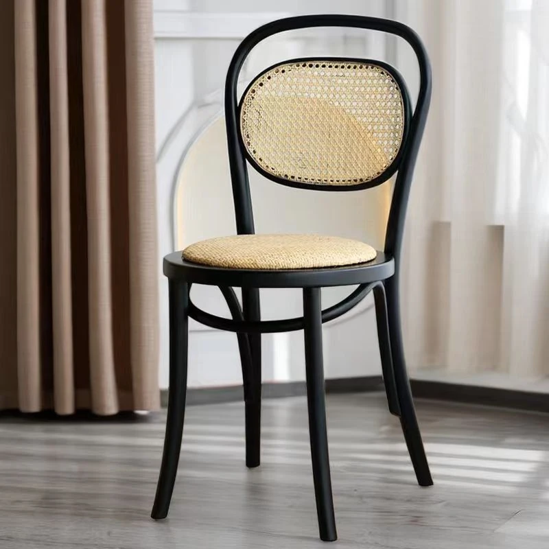 French Vintage Solid Wood Dining Chair - American Rattan Chair for Home Use, Mid-Century Backrest Chair, Elegant Leisure Dining Chair