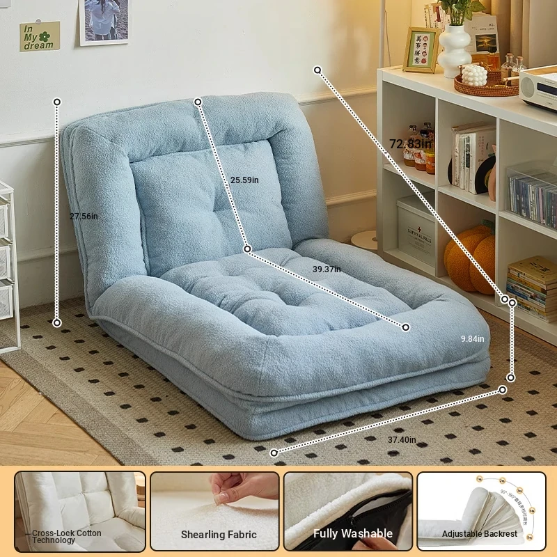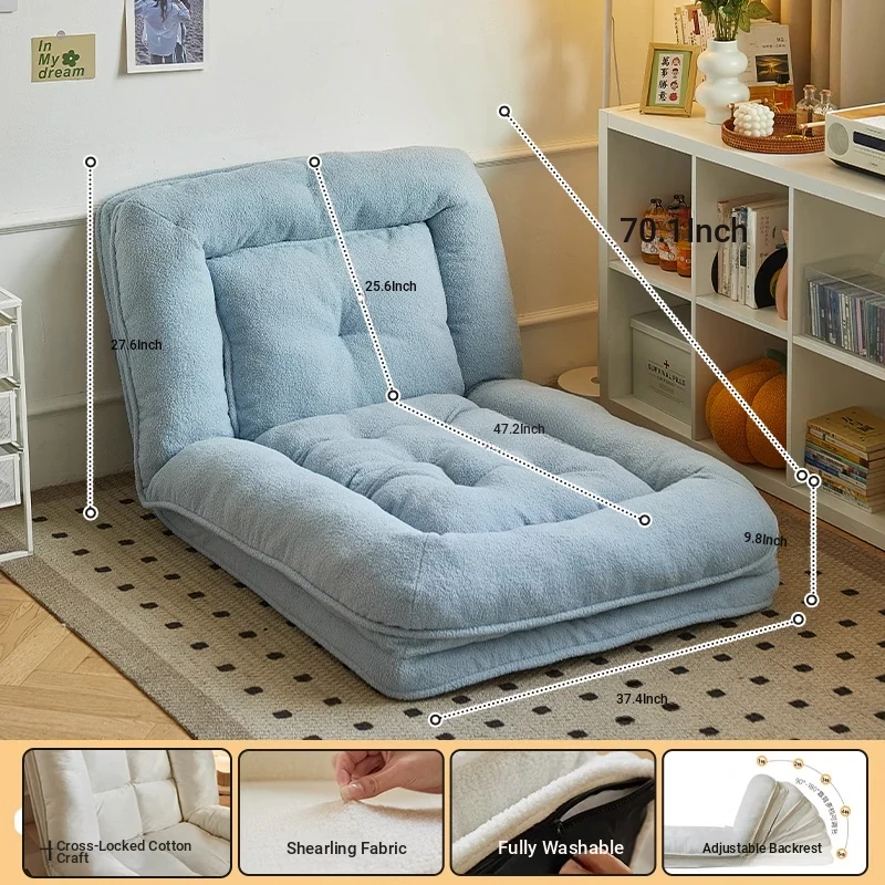 Super thick (expanded 78.74in * 37.40in) Comfortable Cashmere-light blue [complimentary backrest, cushion]]