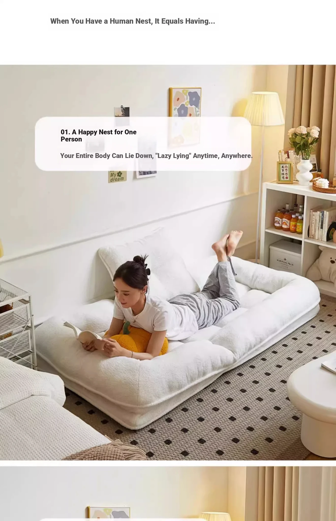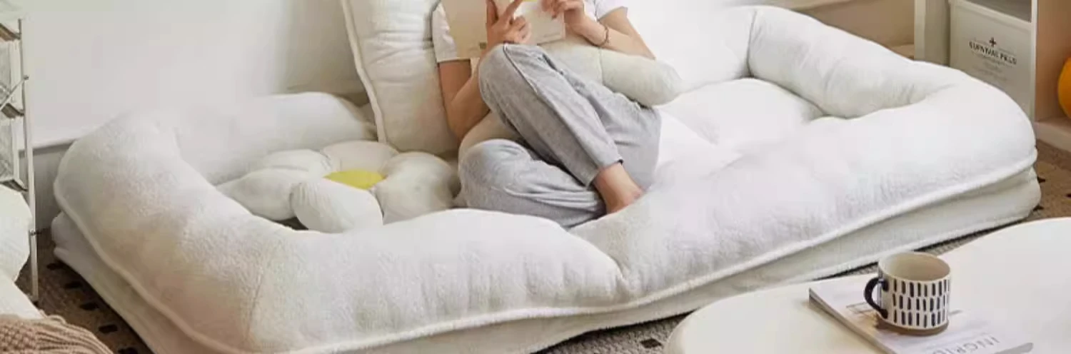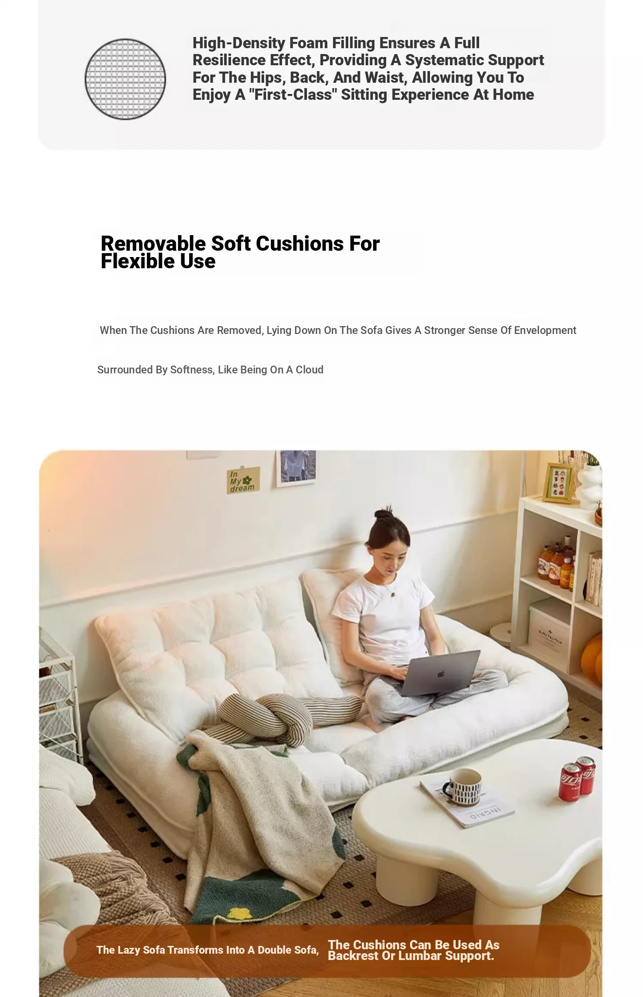 Super thick (expanded 78.74in * 37.40in) Comfortable Cashmere-creamy-white [complimentary backrest, cushion]]