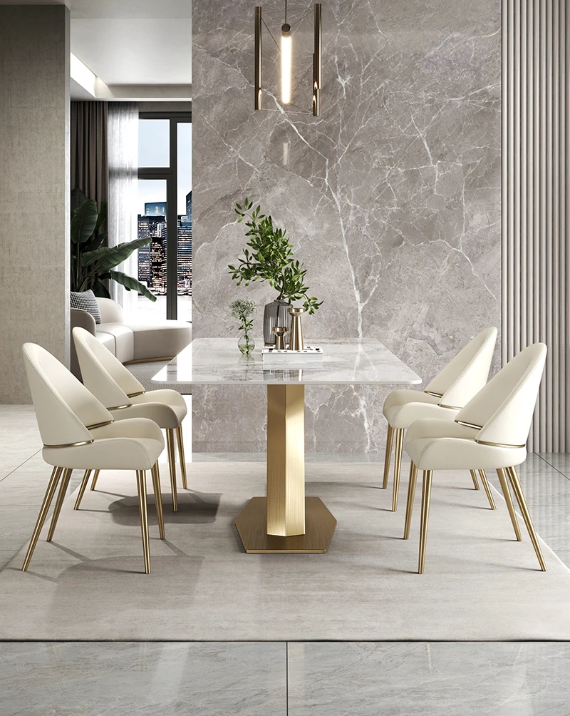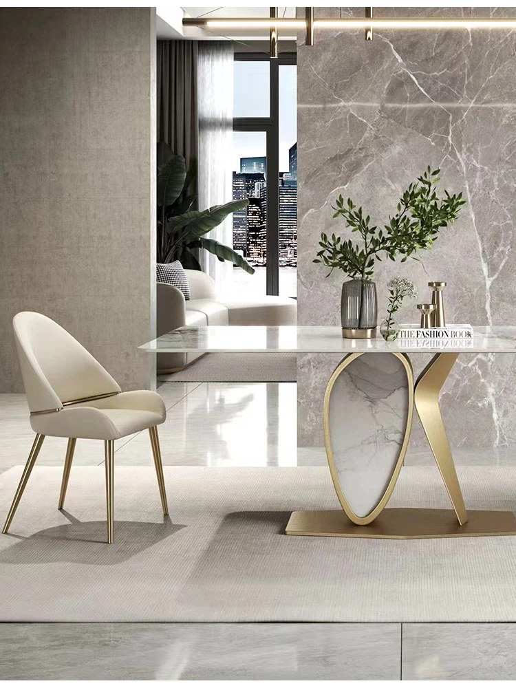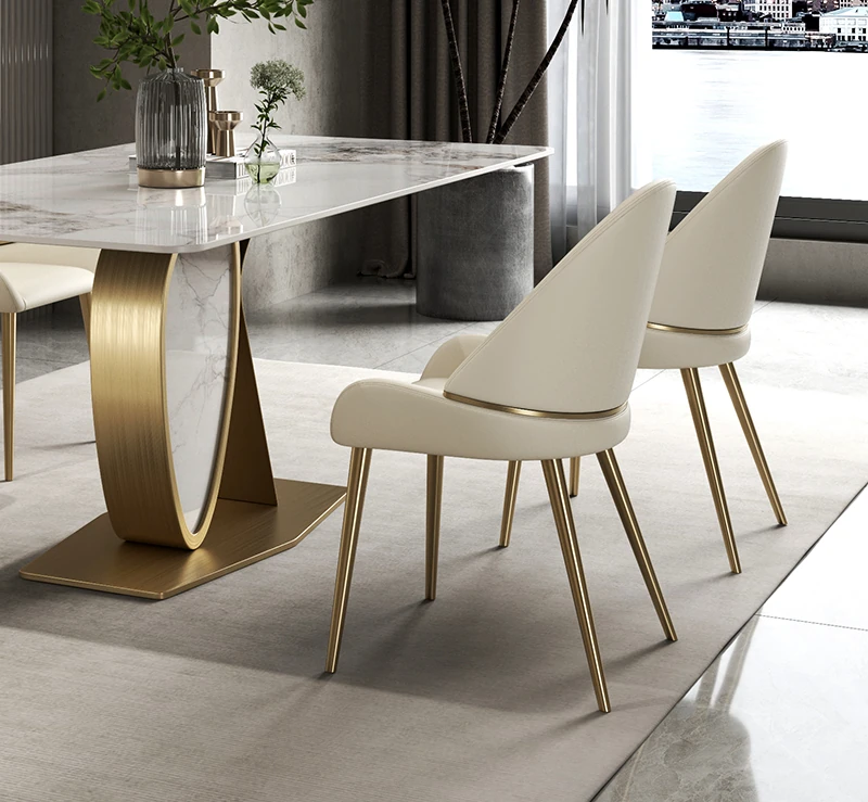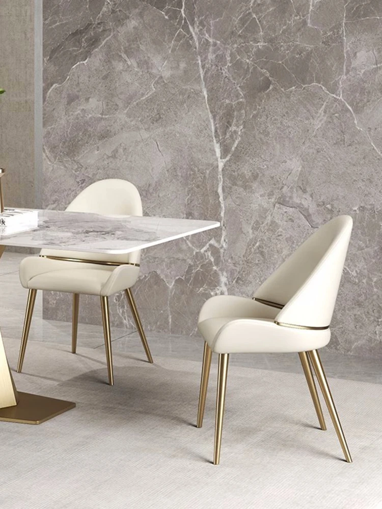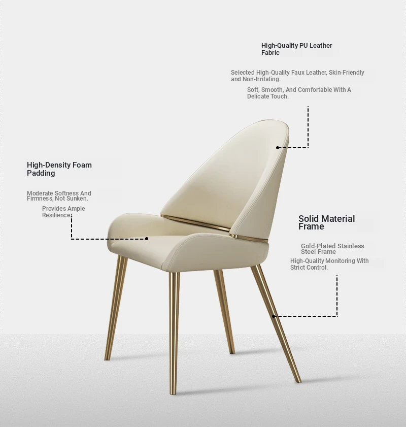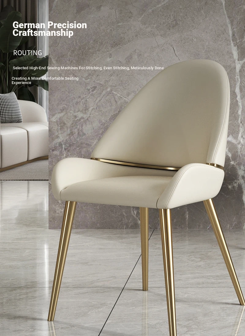 Italian Minimalist Stainless Steel Dining Chair - Premium Designer Armchair with Leisure Backrest, Perfect for Home and Dining Room, Upholstered in Genuine Leather