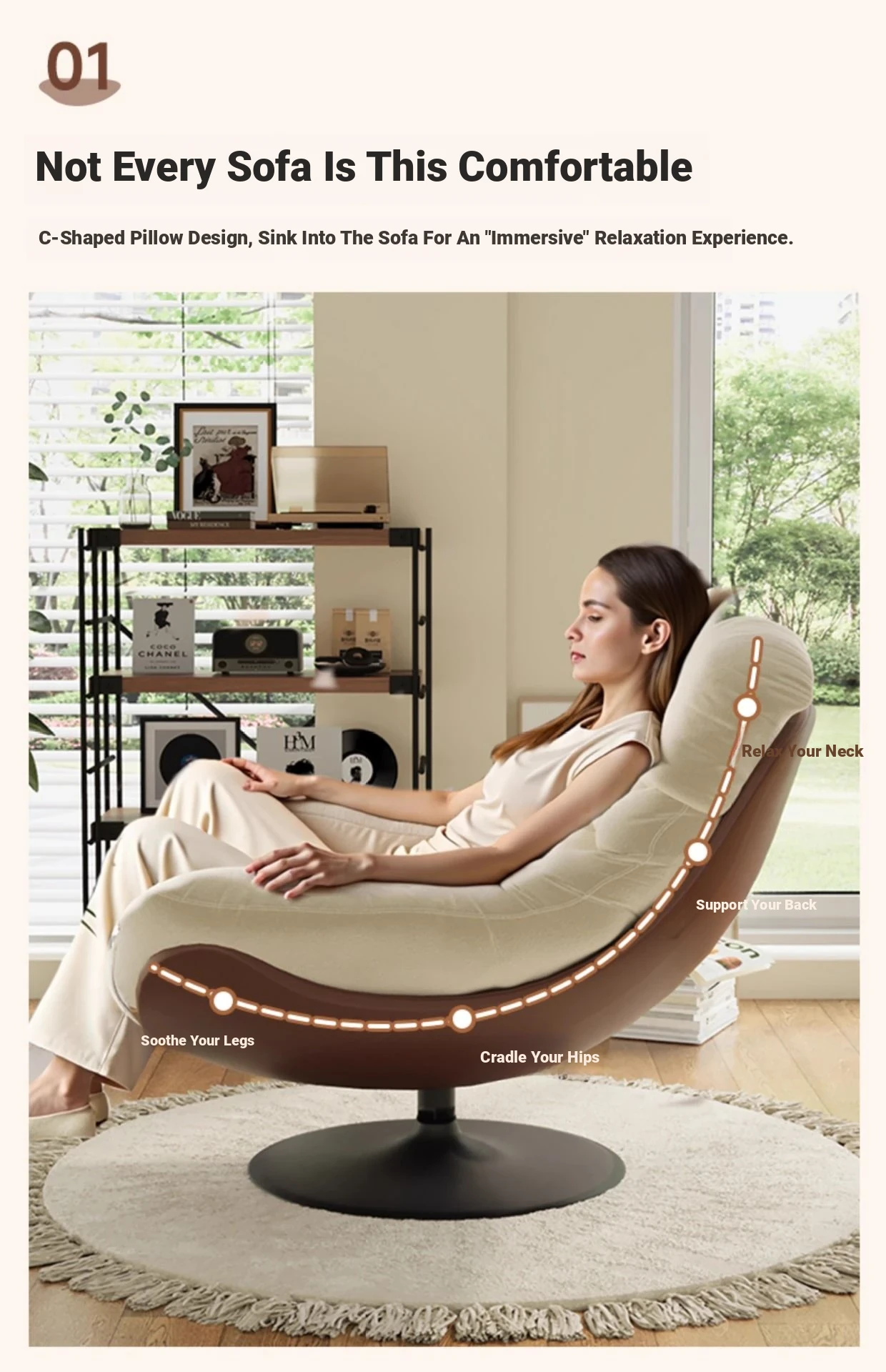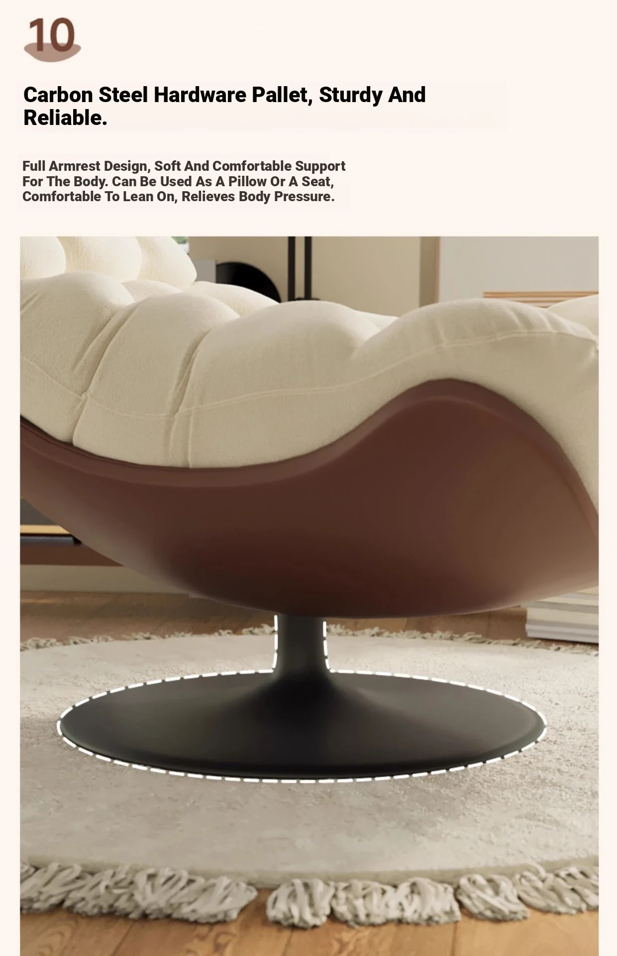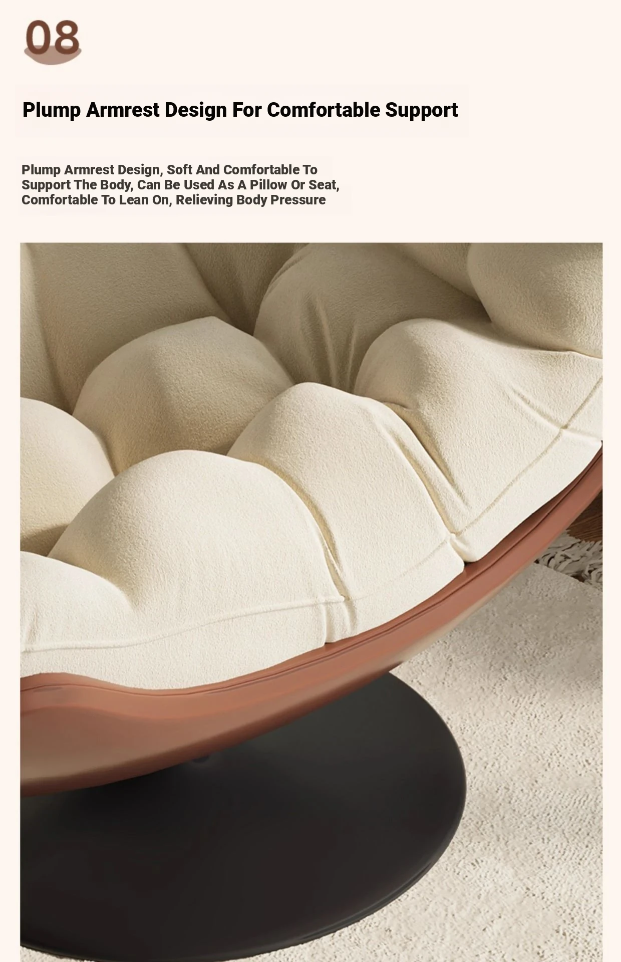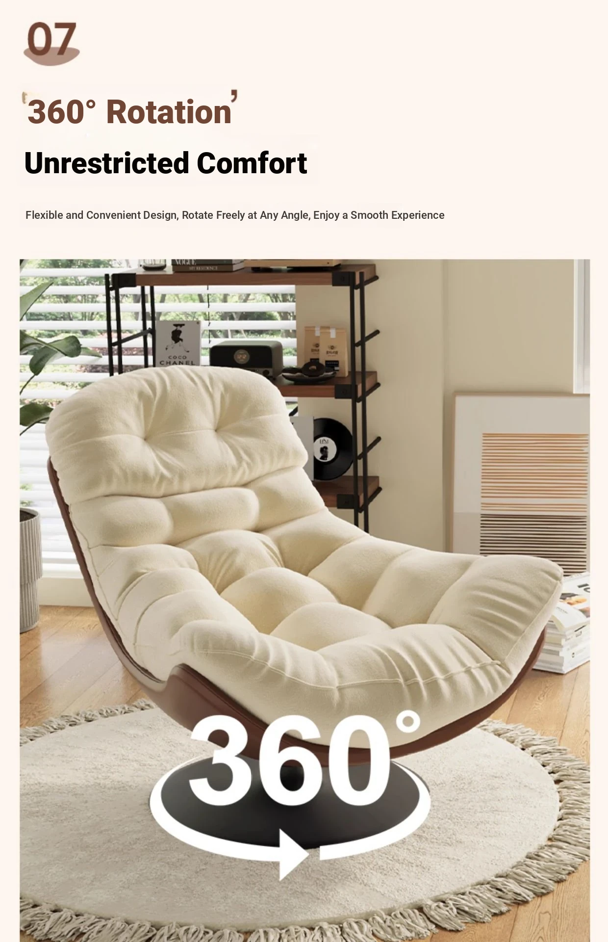 A- shaped swivel chair rice skin spell creamy-white