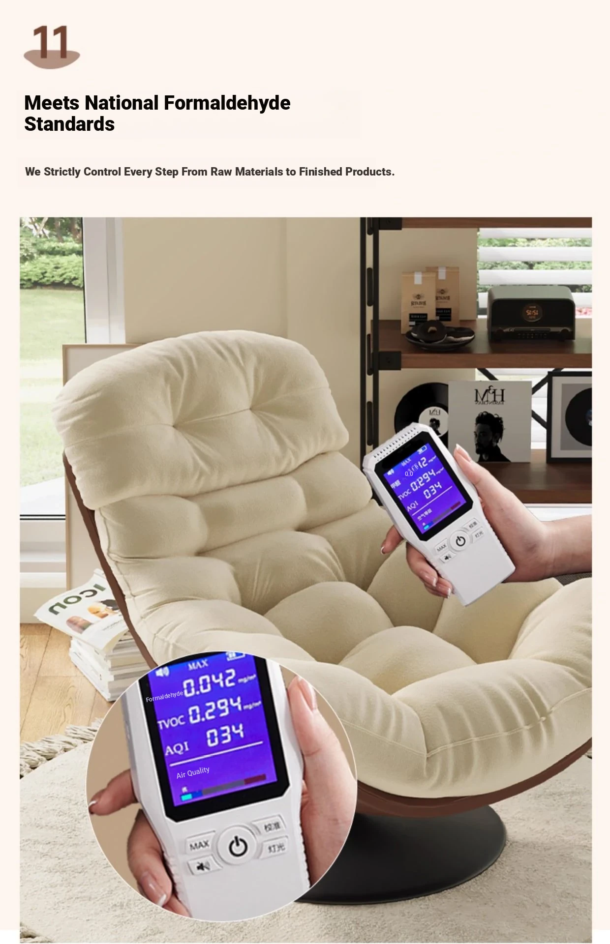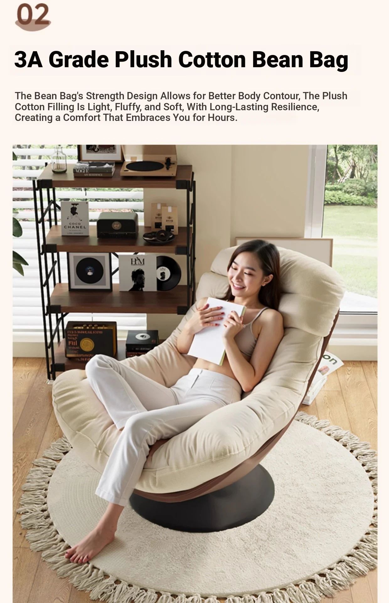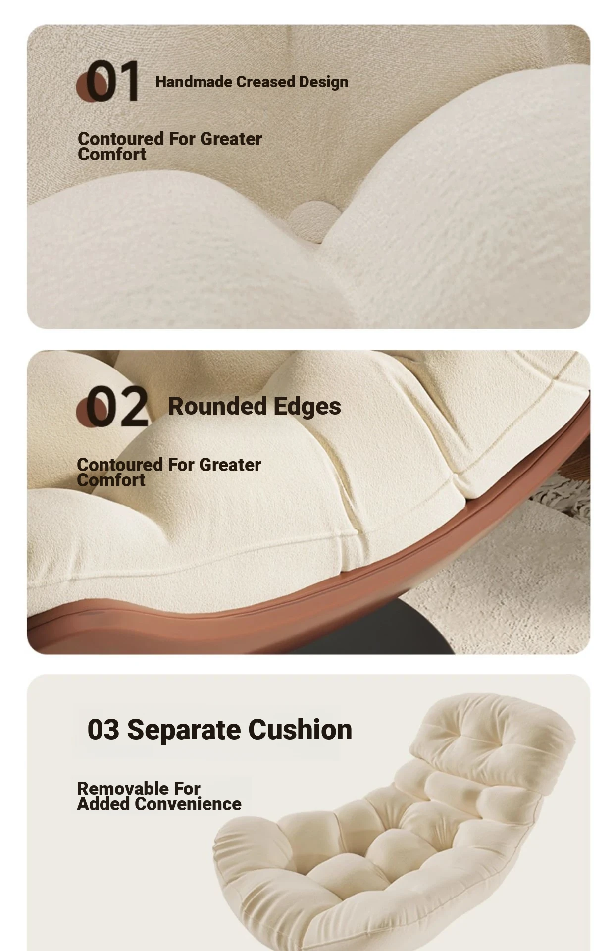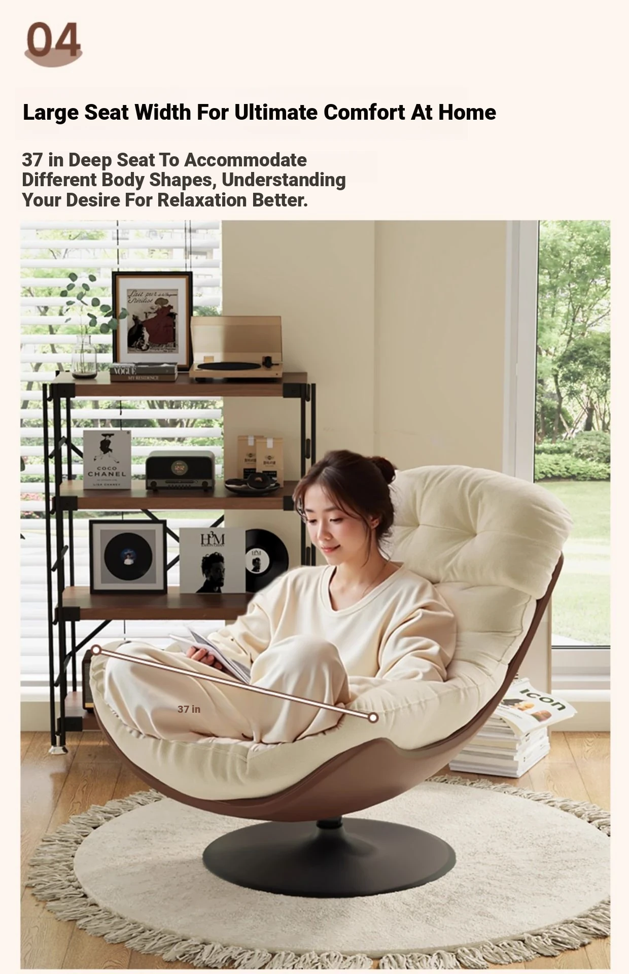 A- shaped swivel chair rice skin spell creamy-white
