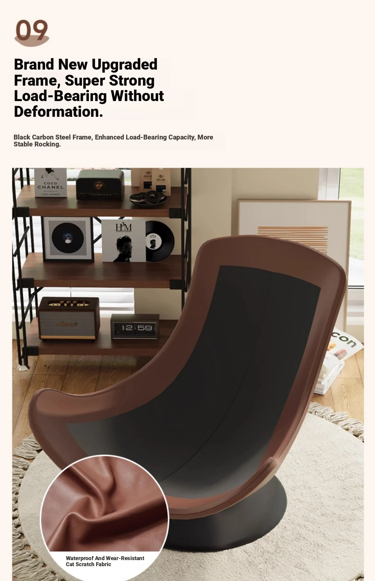 A- shaped swivel chair with brown leather and White
