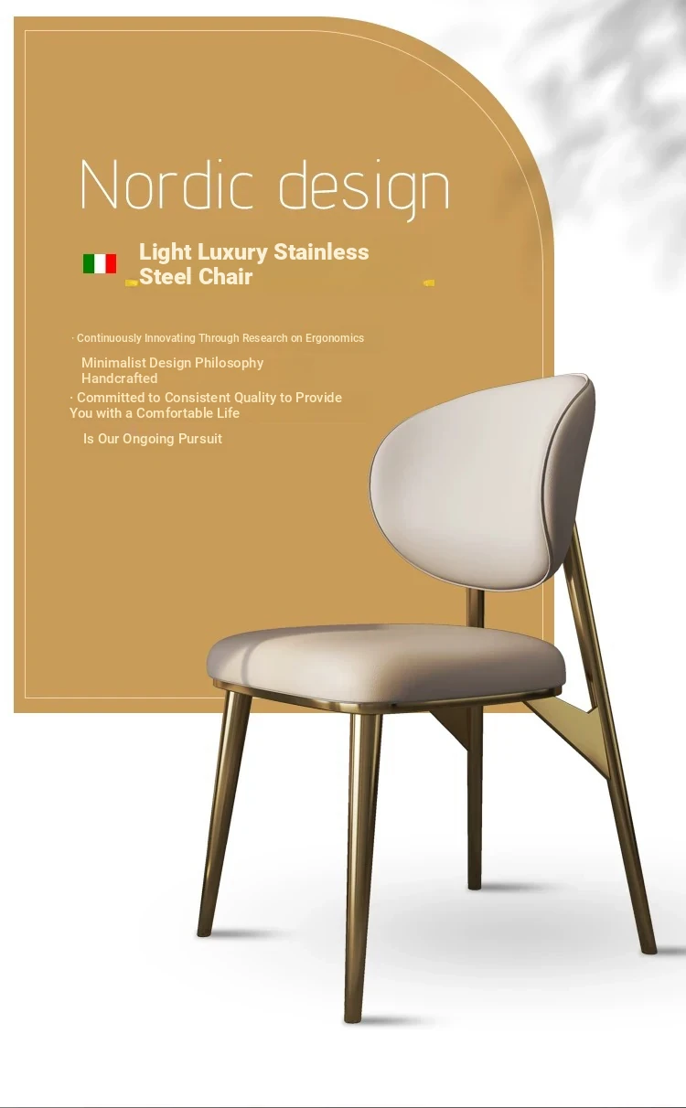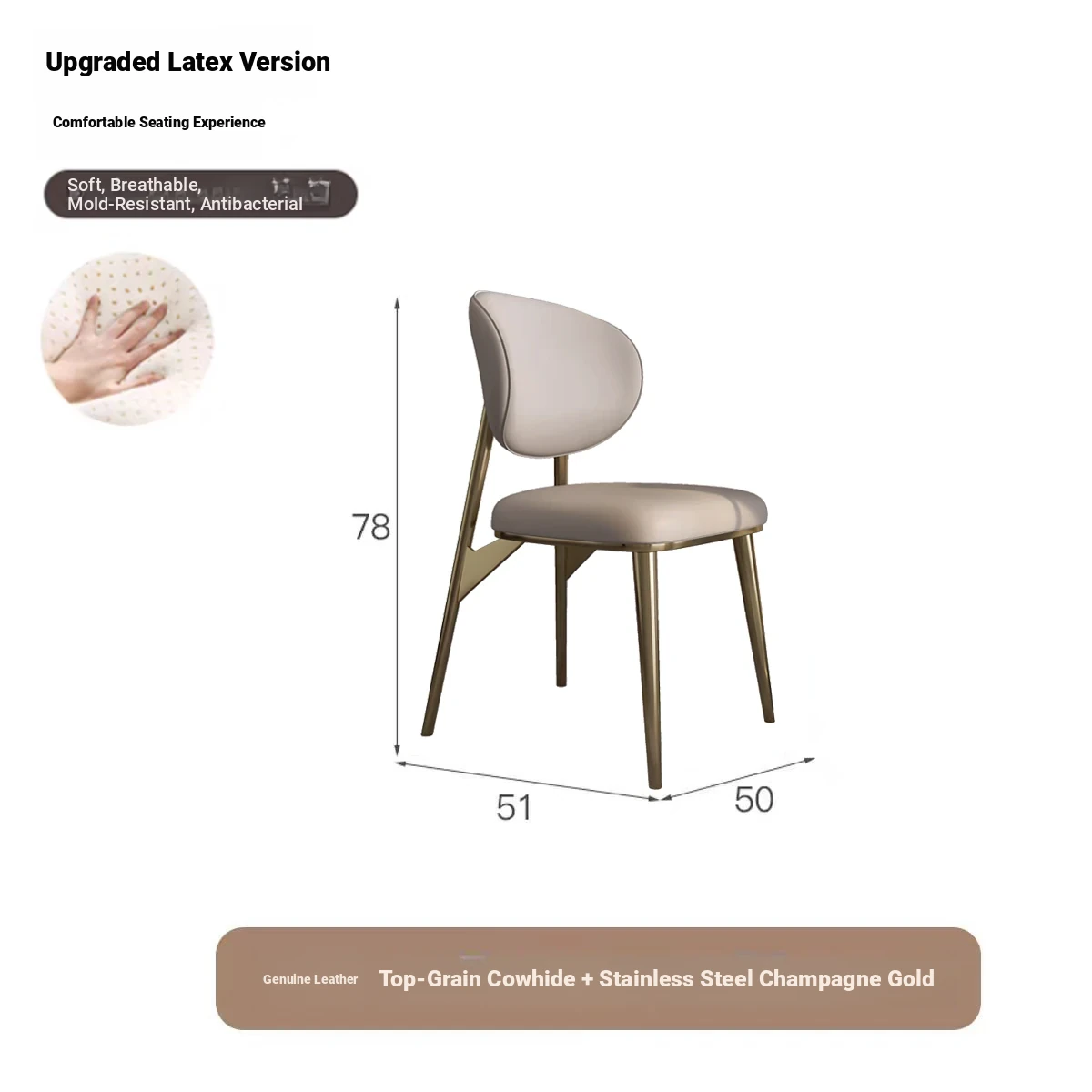 Luxurious Modern Dining Chair - Made with Top-Grade Genuine Leather, Perfect for Small Spaces! Features a Comfortable Backrest and Durable Stainless Steel Frame, Ideal for Home Use. Elevate Your Dining Experience with Style and Elegance!
