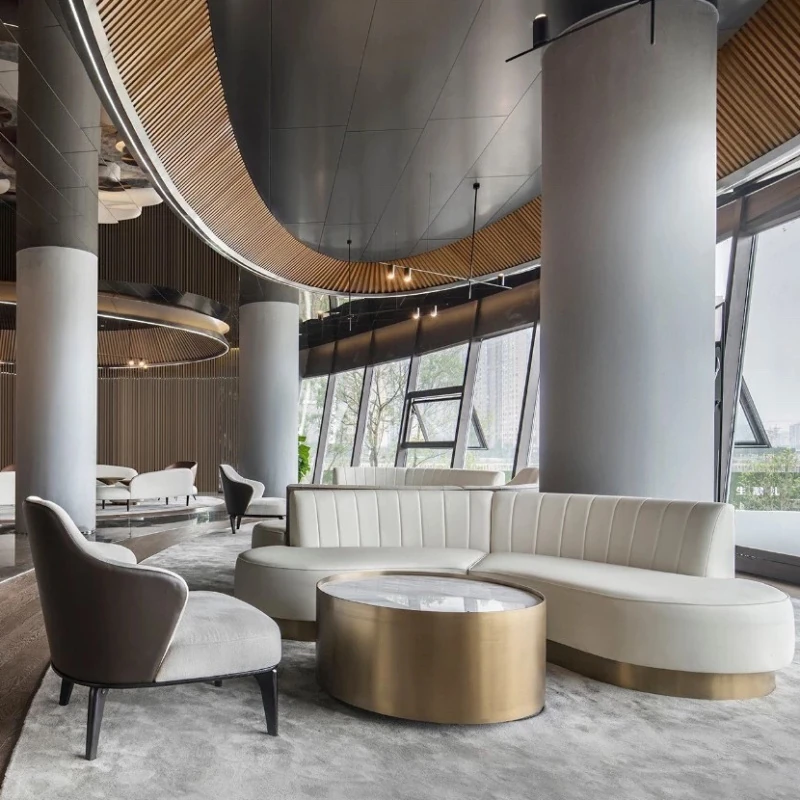 Modern Curved Luxury Reception Sofa Set for Sales Offices and Hotels - Stylish and Functional Lounge Furniture for Marketing Centers and Meeting Spaces