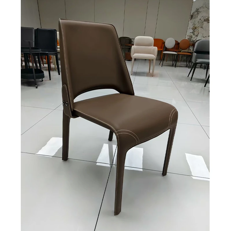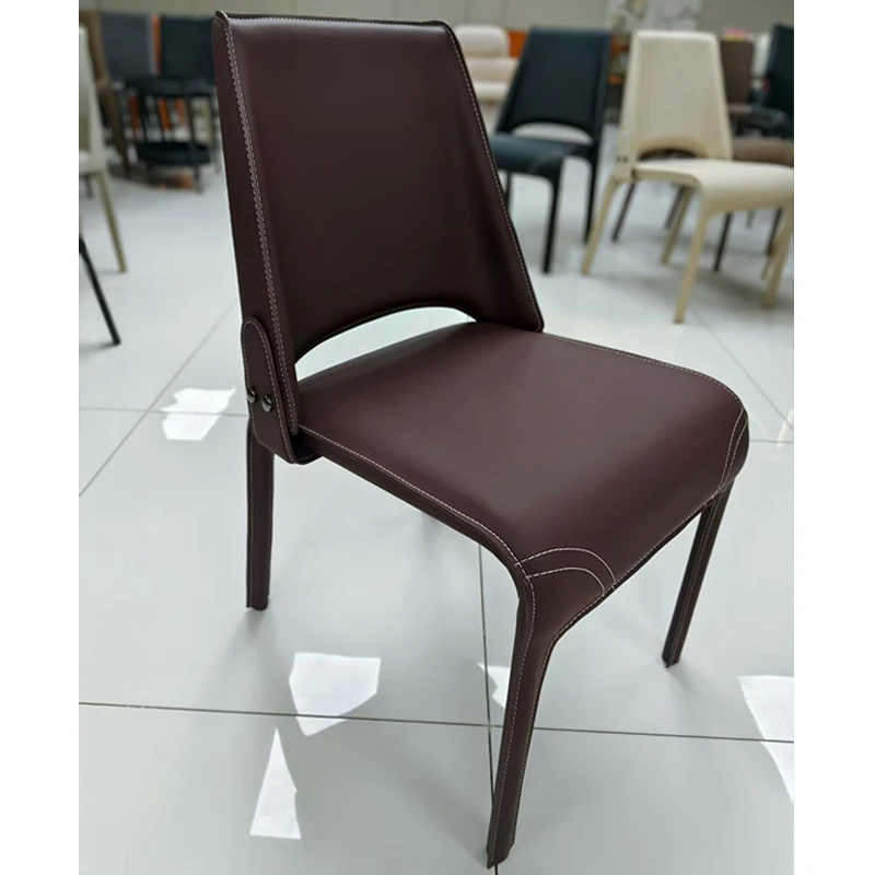 Modern Minimalist Italian Saddle Leather Dining Chair - Stylish and Comfortable for Home, Restaurant, and Hotel Use - Perfect for Dining Rooms, Bedrooms, and Desks.