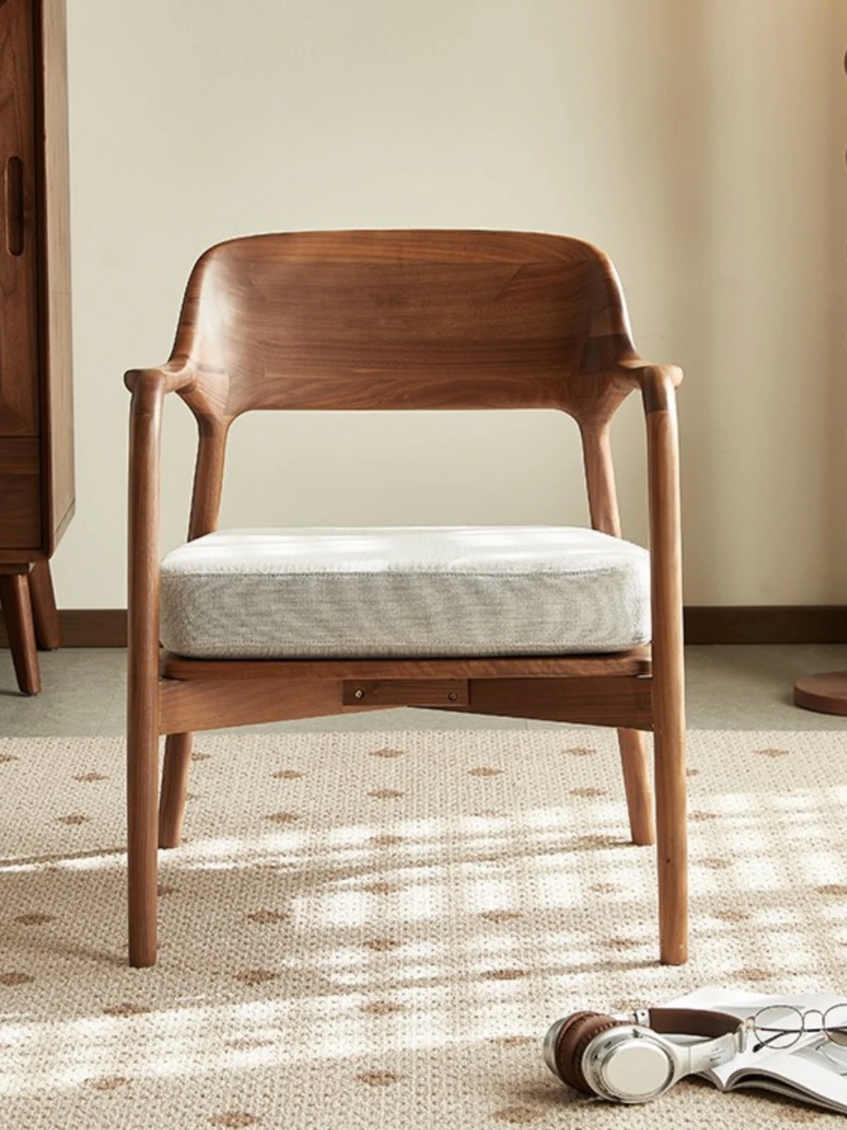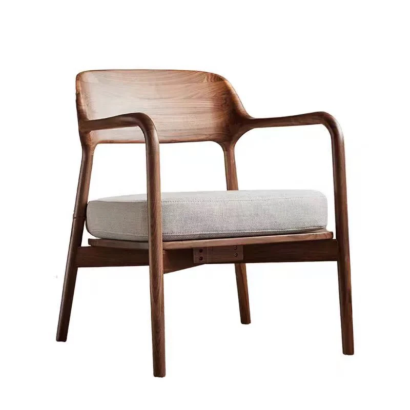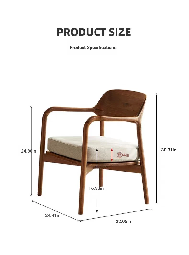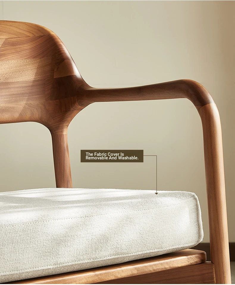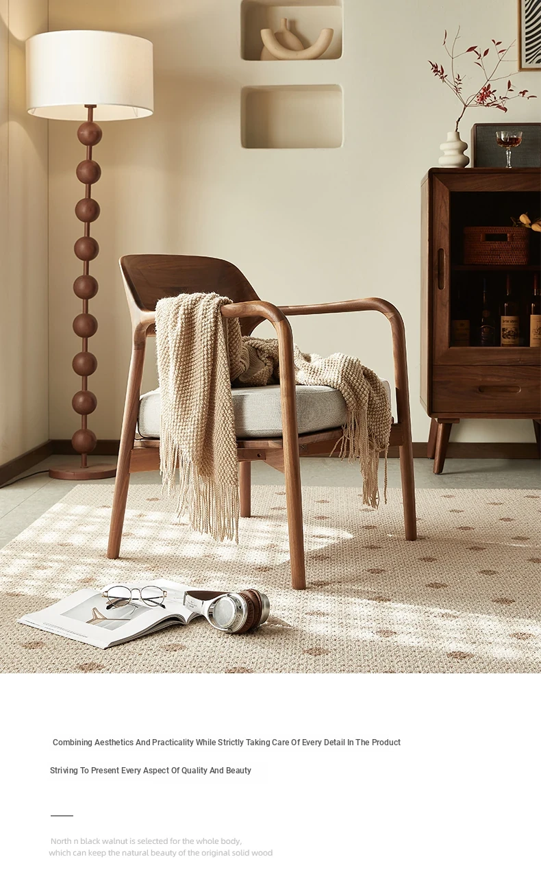 Modern Minimalist Single Sofa Chair in North American Black Walnut - Stylish Soft-Padded Recliner for Living Room, Study, and Relaxation. Perfect for Cozy Comfort!