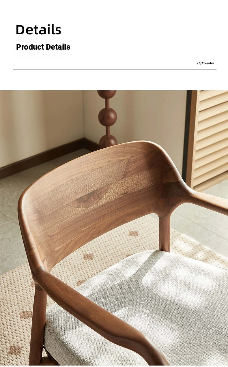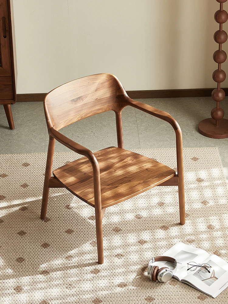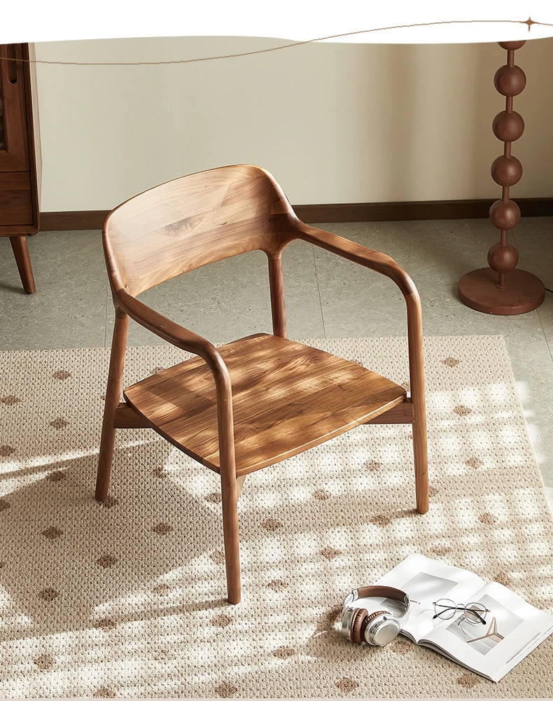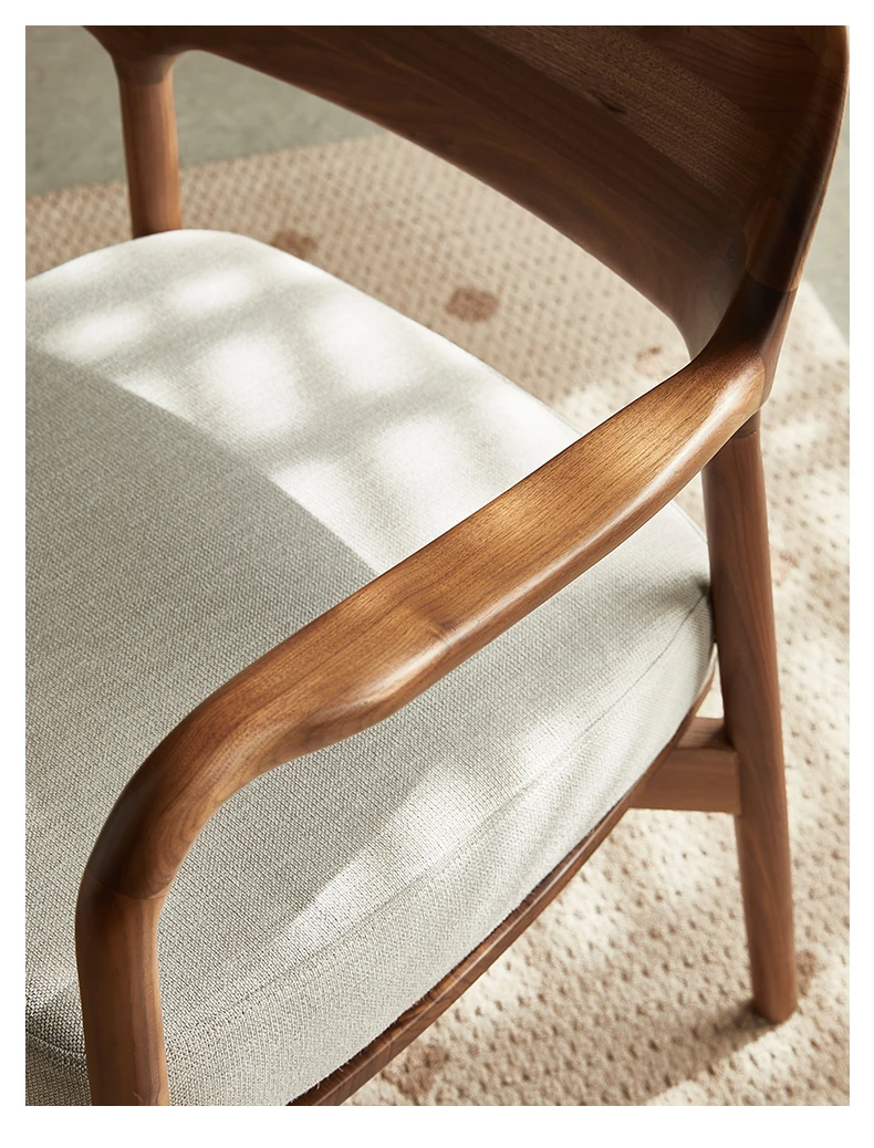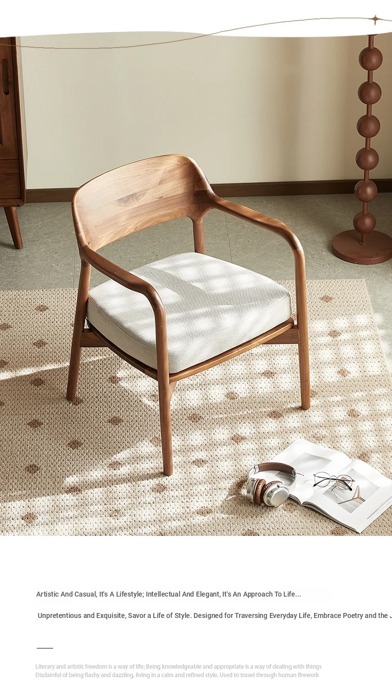 Modern Minimalist Single Sofa Chair in North American Black Walnut - Stylish Soft-Padded Recliner for Living Room, Study, and Relaxation. Perfect for Cozy Comfort!