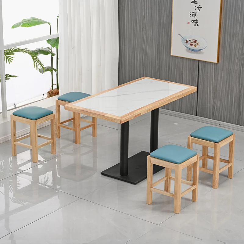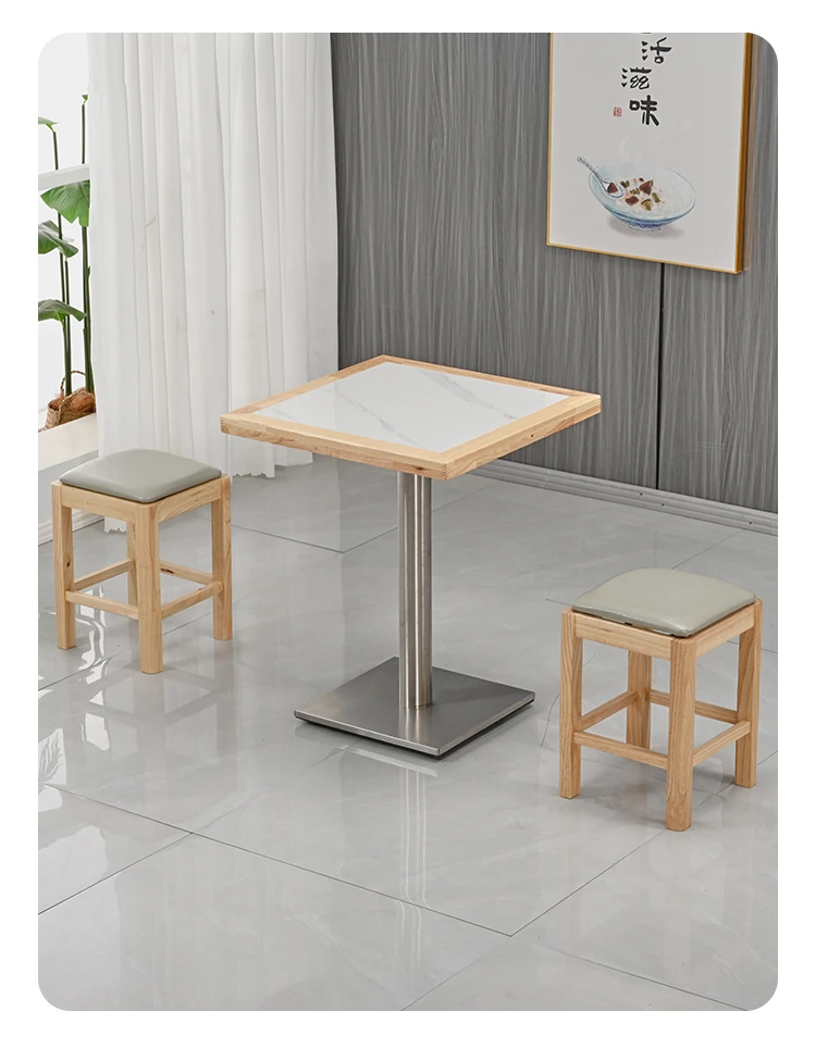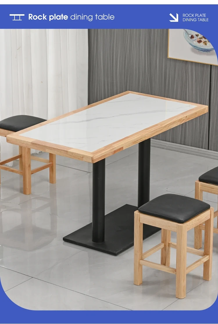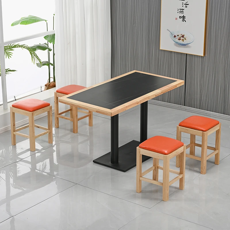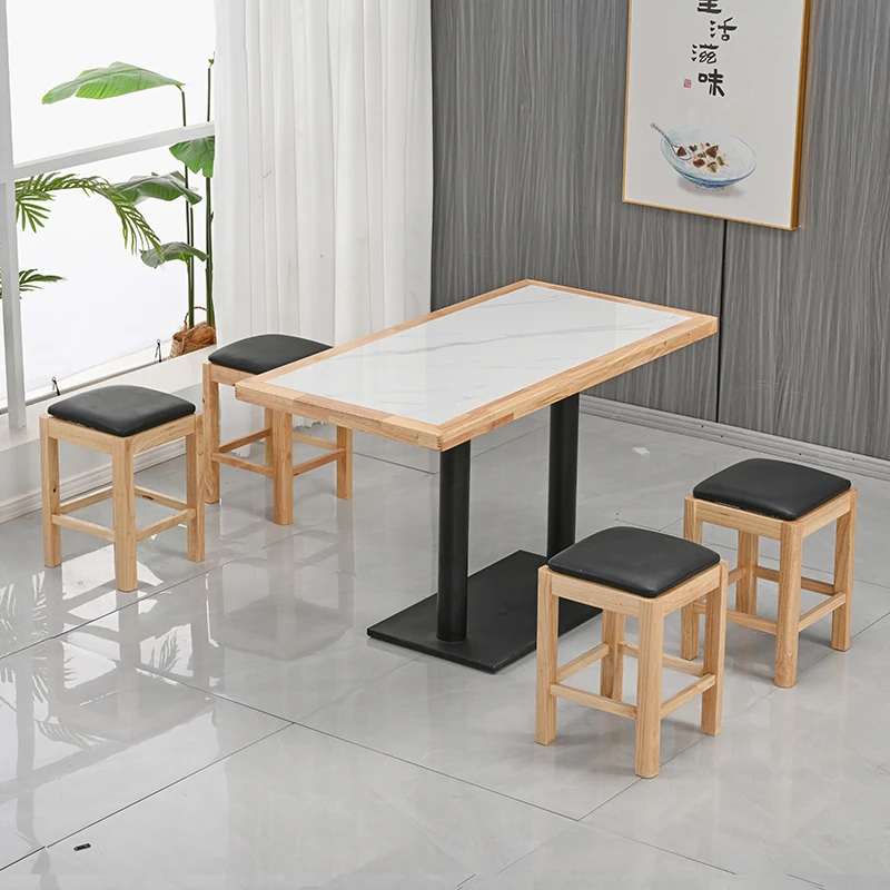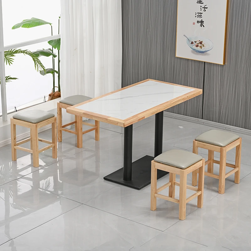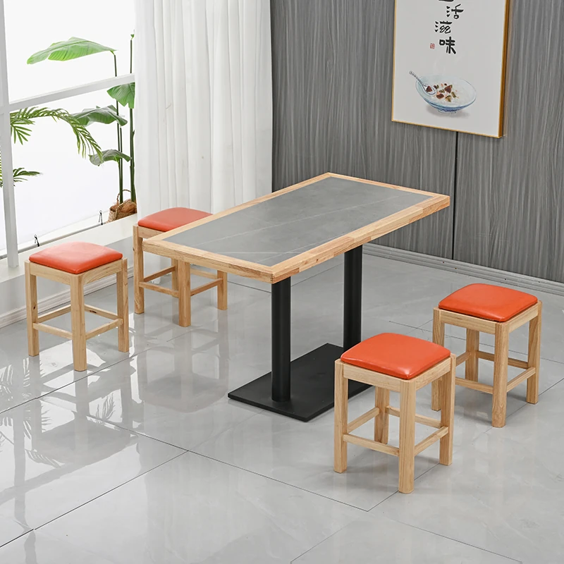 Modern Minimalist Solid Wood Rock Plate Café Tables and Chairs for Spicy Hot Pot Restaurants, Fast Food Outlets, Noodle Shops, Milk Tea Cafes, and Dining Halls - Commercial Use