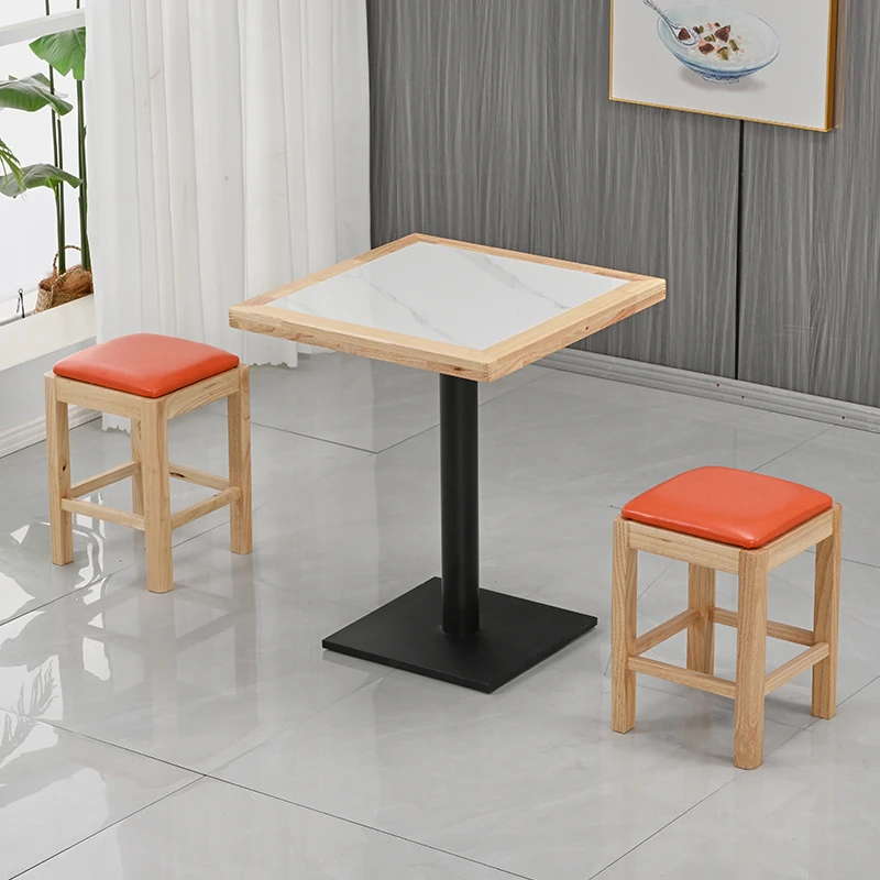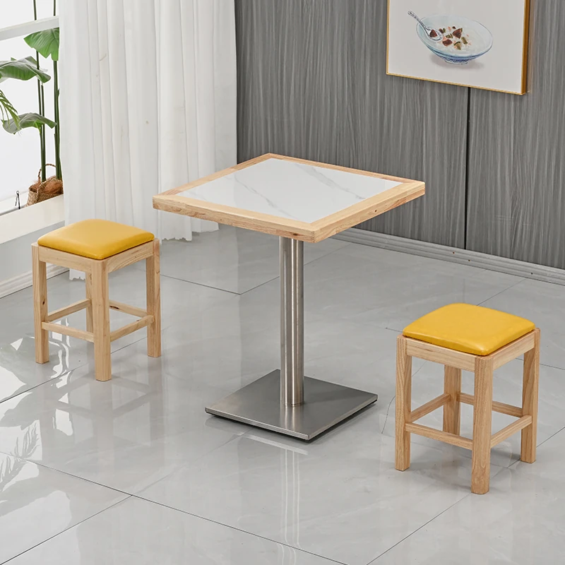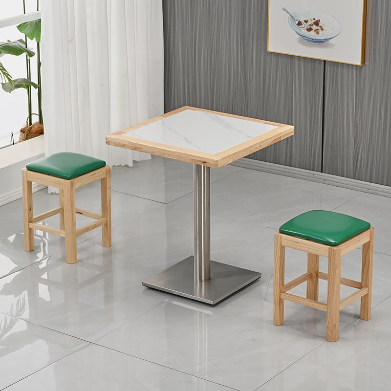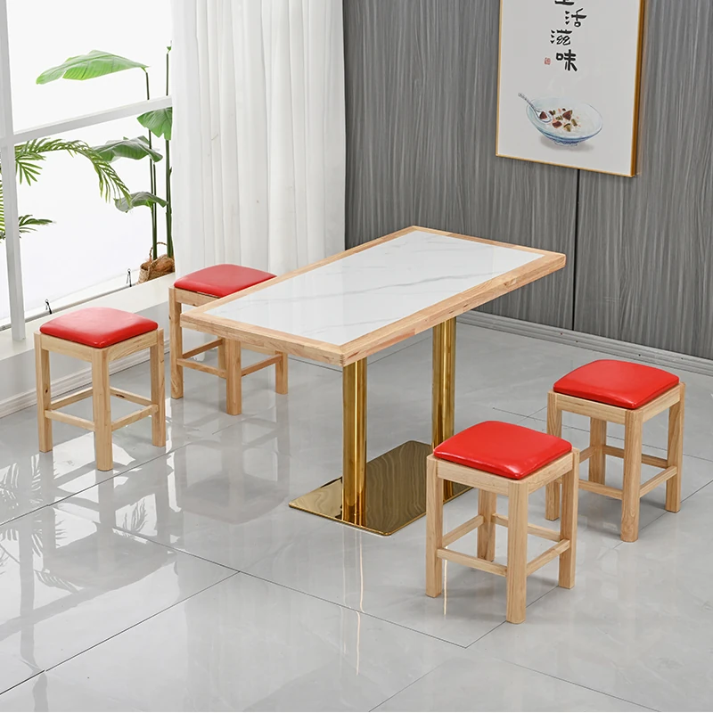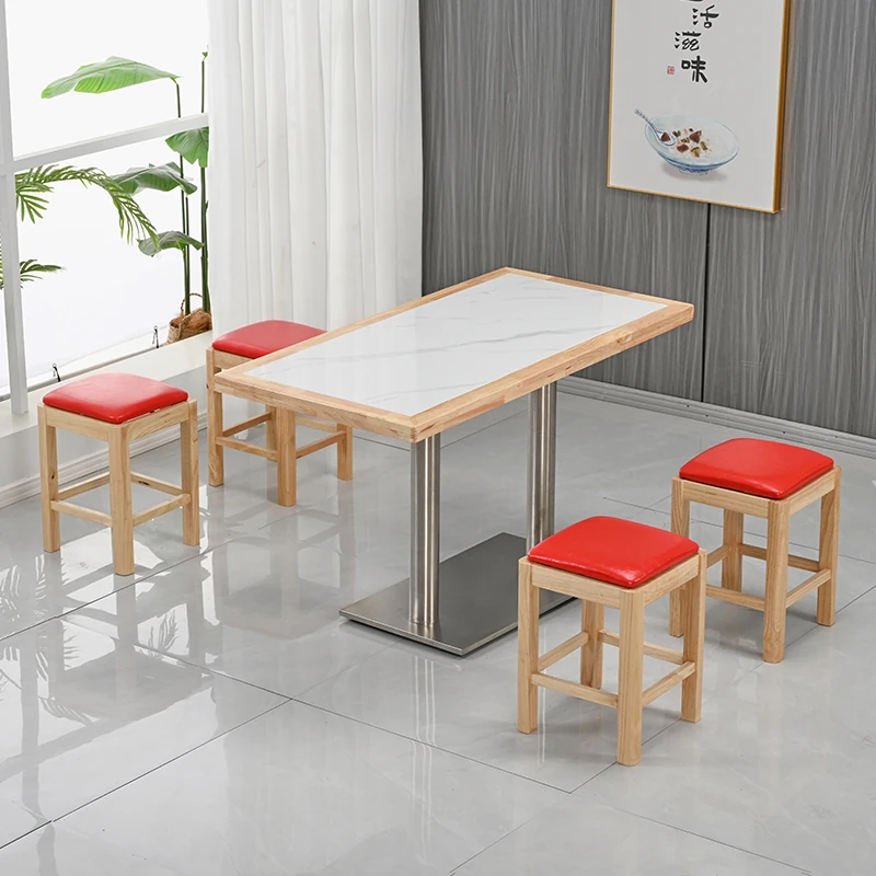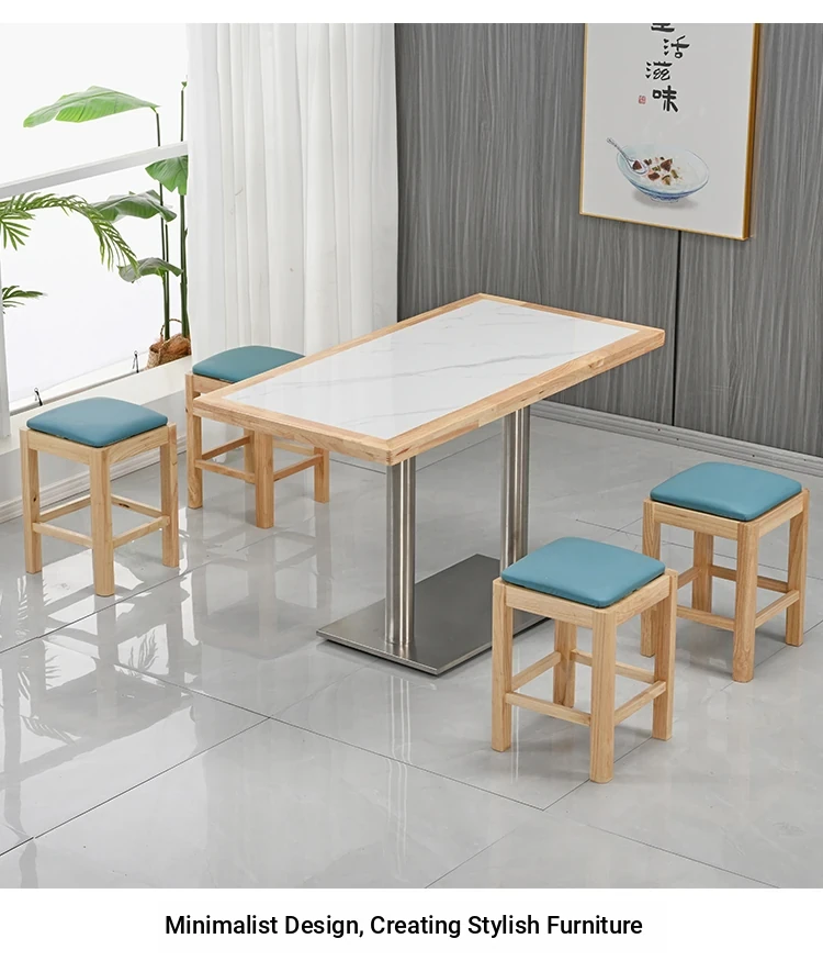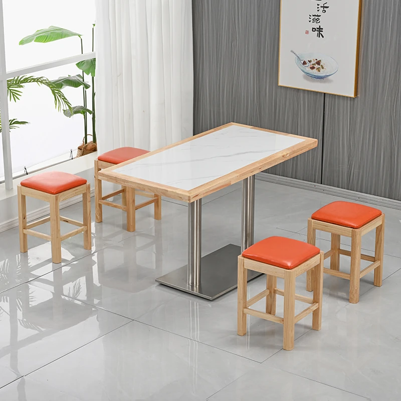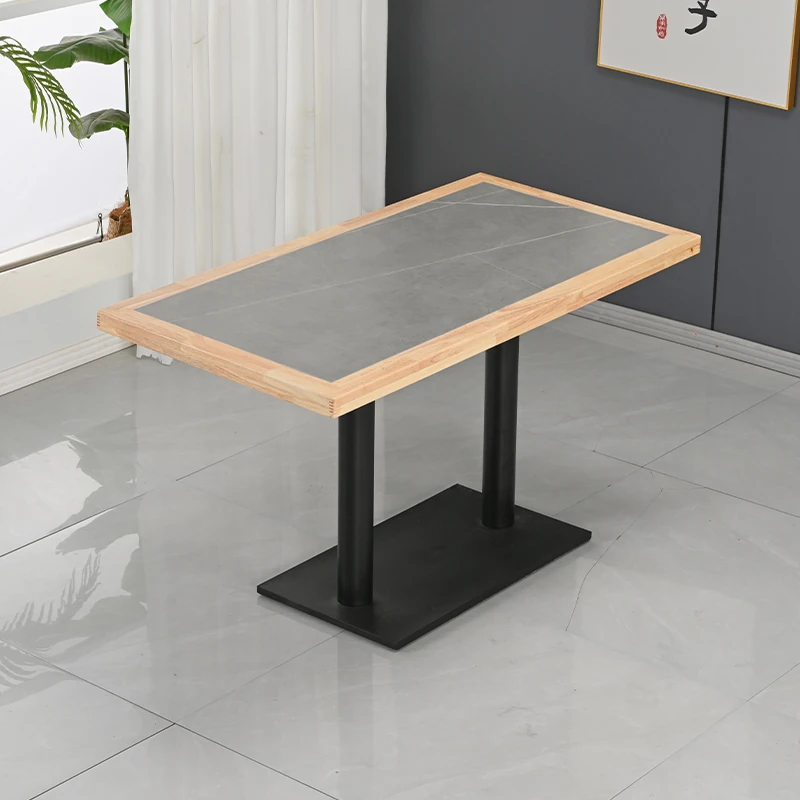 Modern Minimalist Solid Wood Rock Plate Café Tables and Chairs for Spicy Hot Pot Restaurants, Fast Food Outlets, Noodle Shops, Milk Tea Cafes, and Dining Halls - Commercial Use