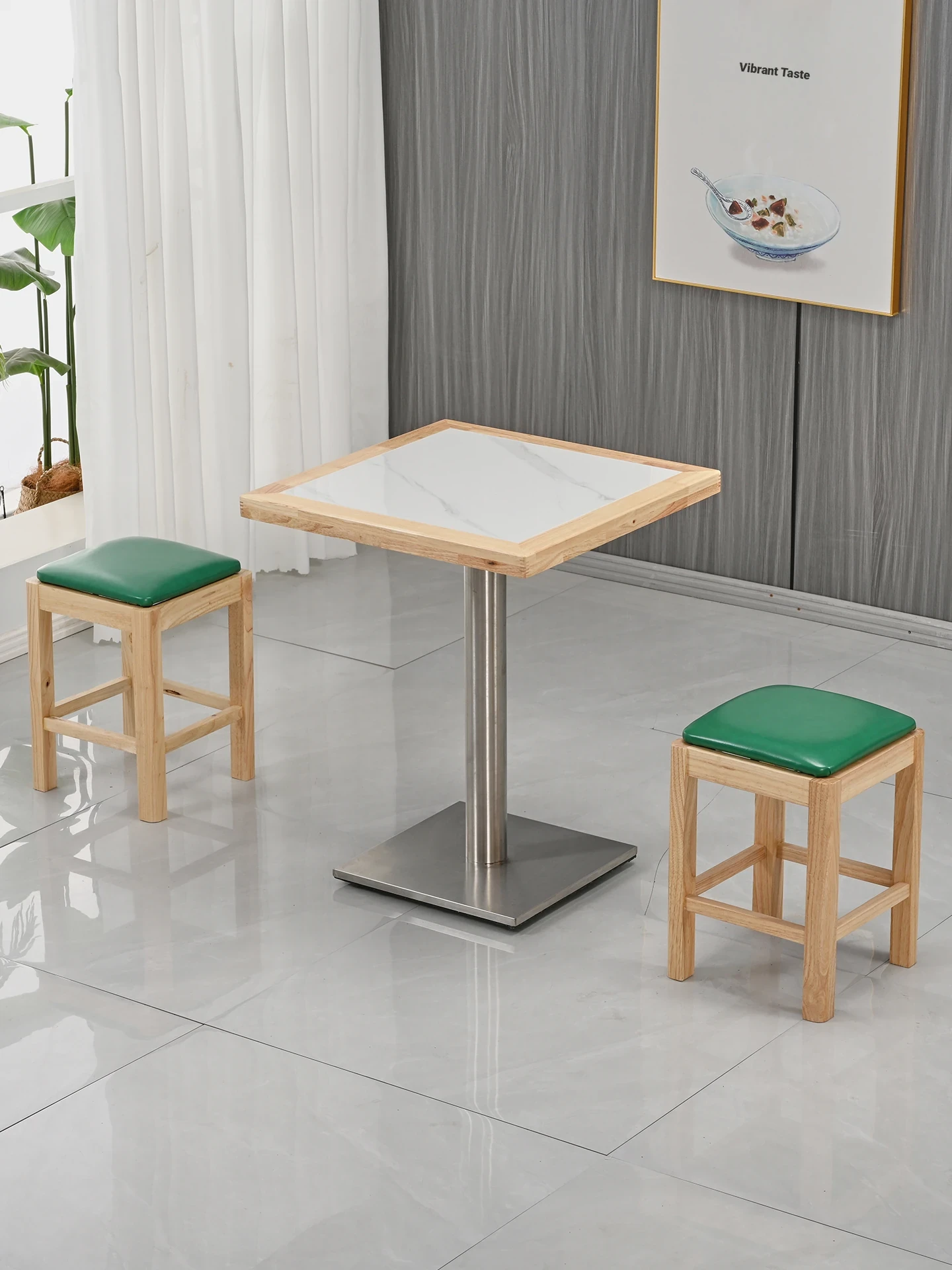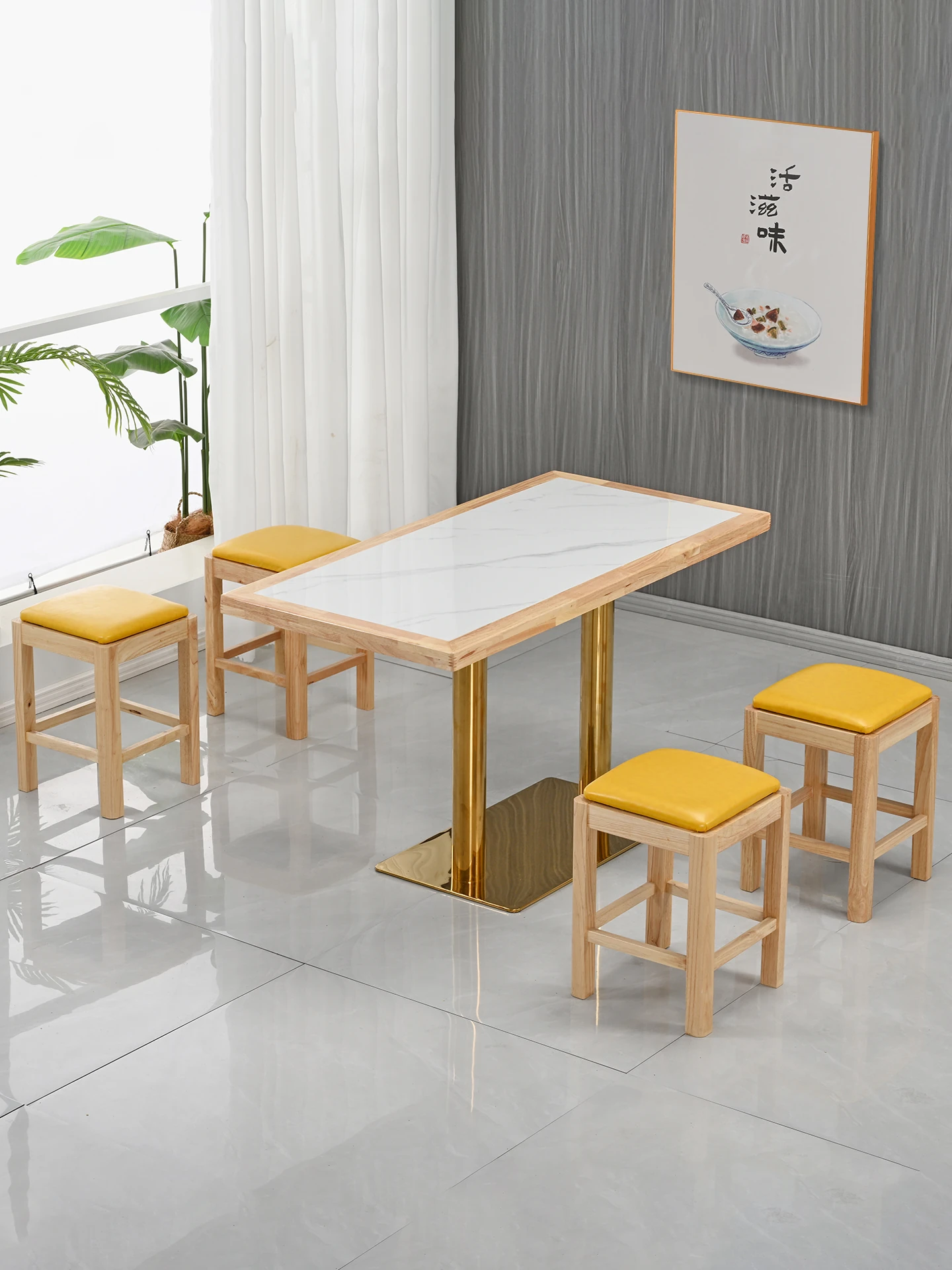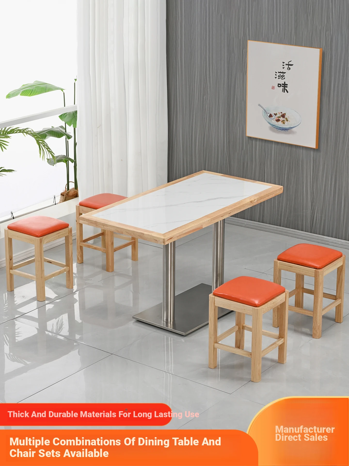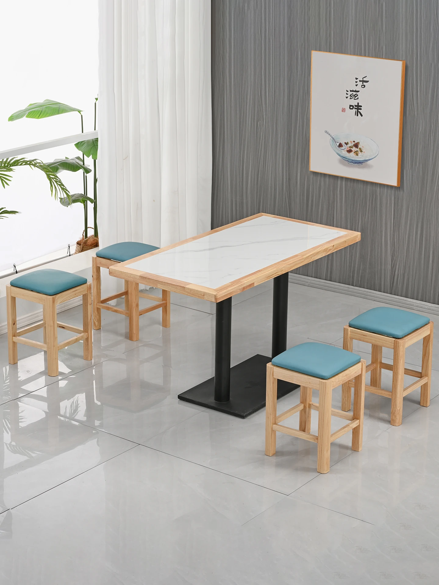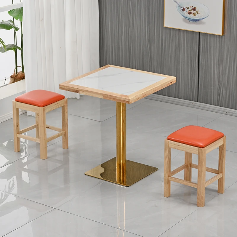 Modern Minimalist Solid Wood Rock Plate Café Tables and Chairs for Spicy Hot Pot Restaurants, Fast Food Outlets, Noodle Shops, Milk Tea Cafes, and Dining Halls - Commercial Use