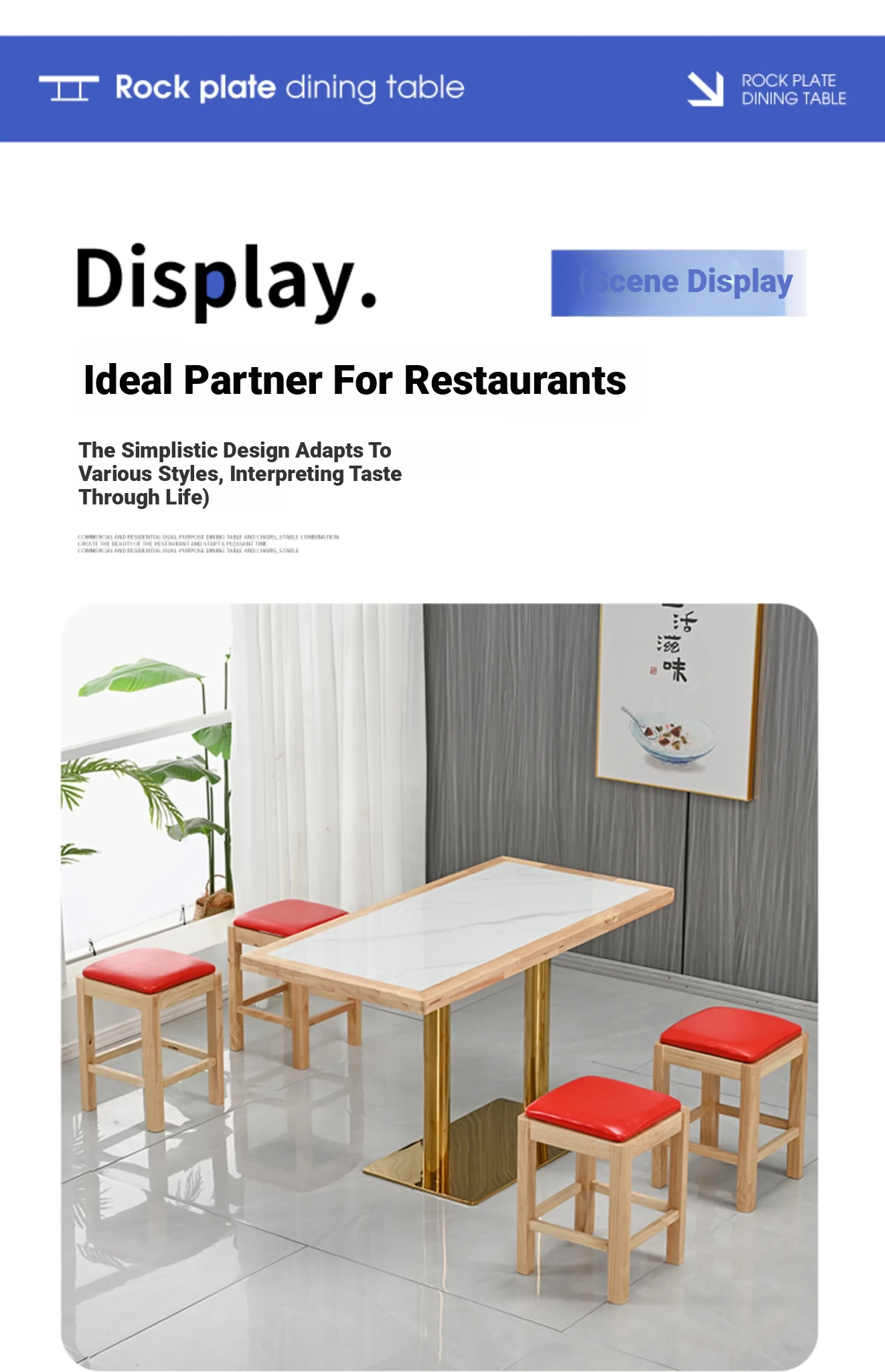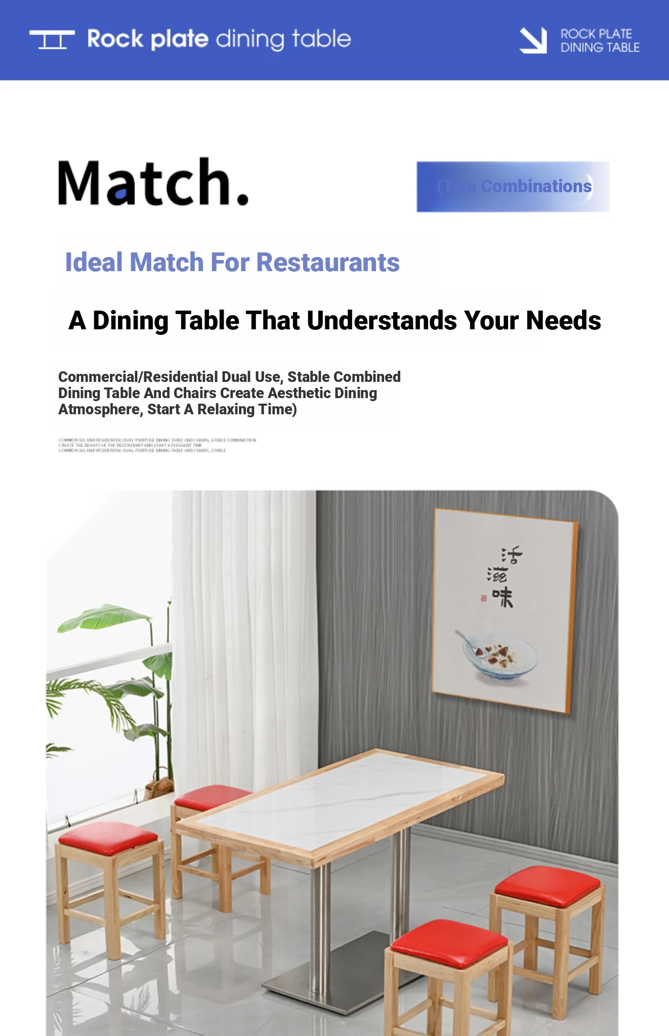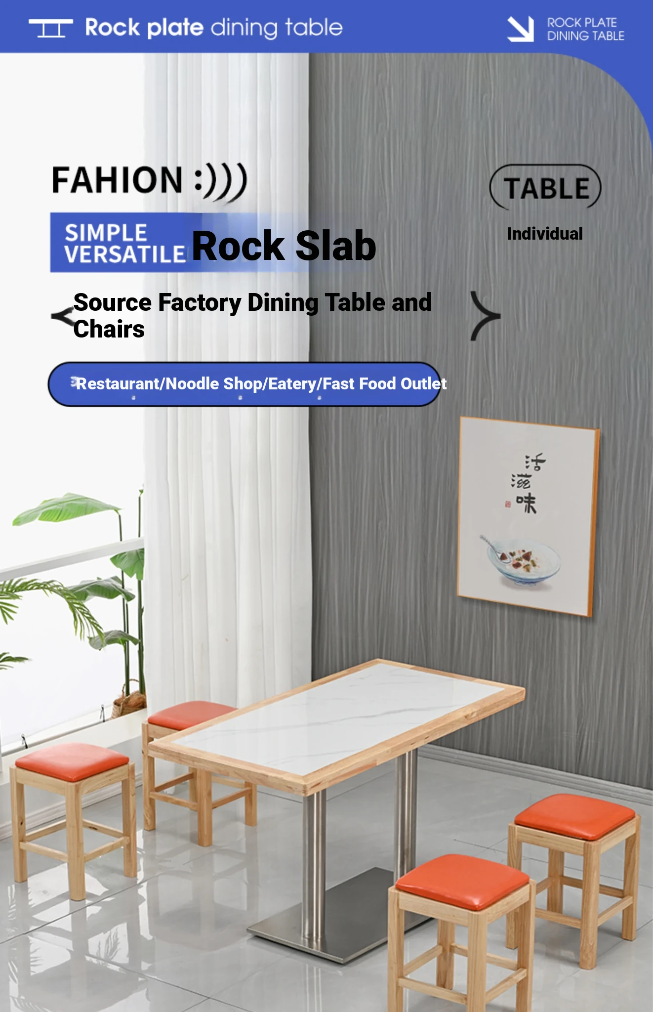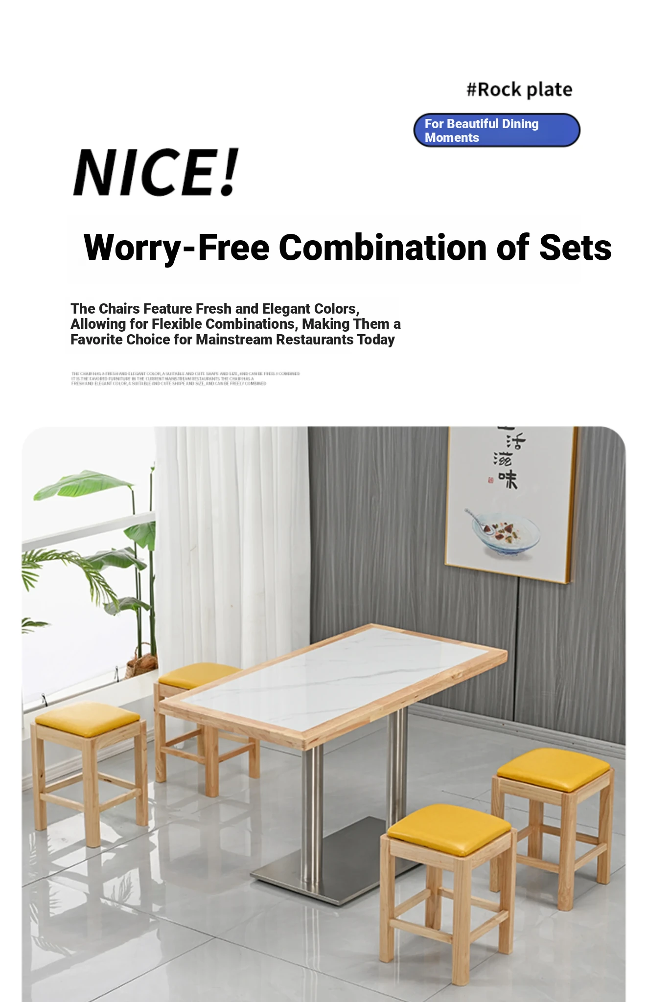 Modern Minimalist Solid Wood Rock Plate Café Tables and Chairs for Spicy Hot Pot Restaurants, Fast Food Outlets, Noodle Shops, Milk Tea Cafes, and Dining Halls - Commercial Use