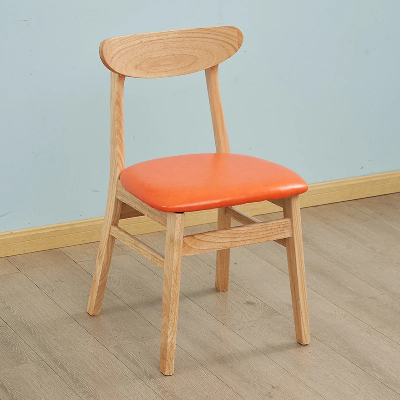 120*70 four-person snowflake white wooden leg table orange bench